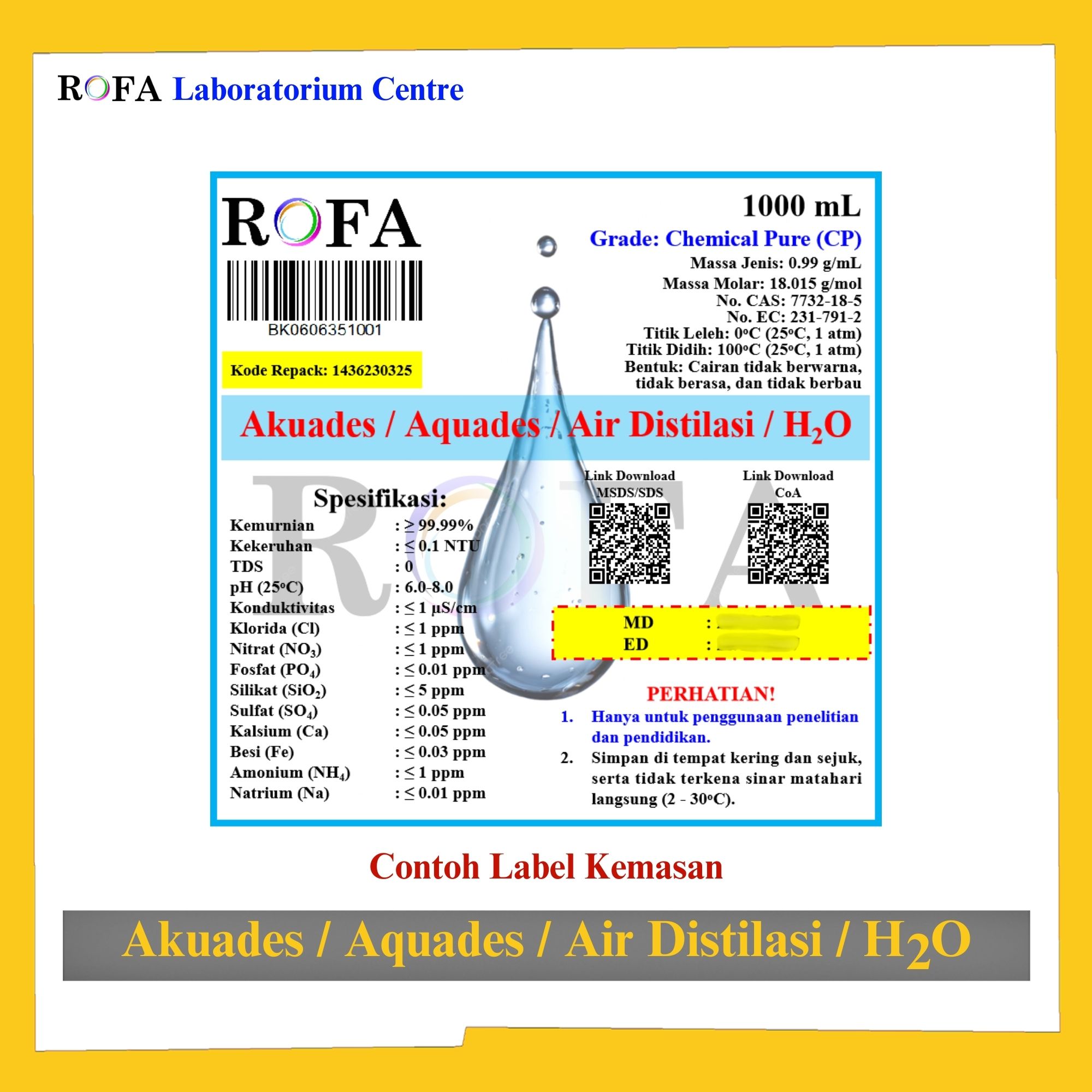 Nama Produk: ROFA Akuades / Aquades / Air Murni / Air Suling / Air Distilasi / H2O 1000 – 5000 mL