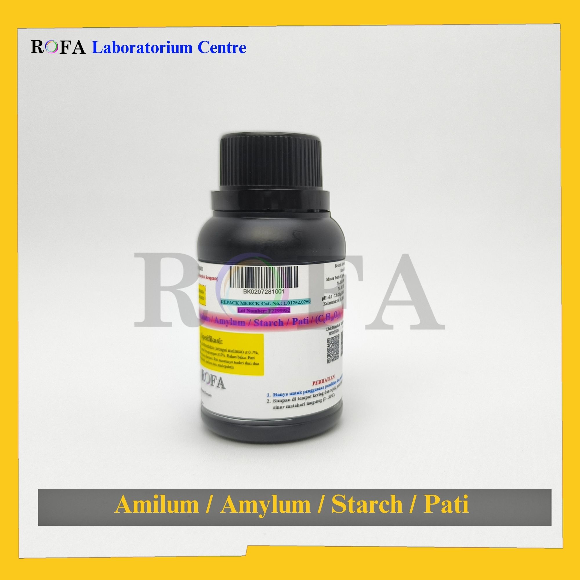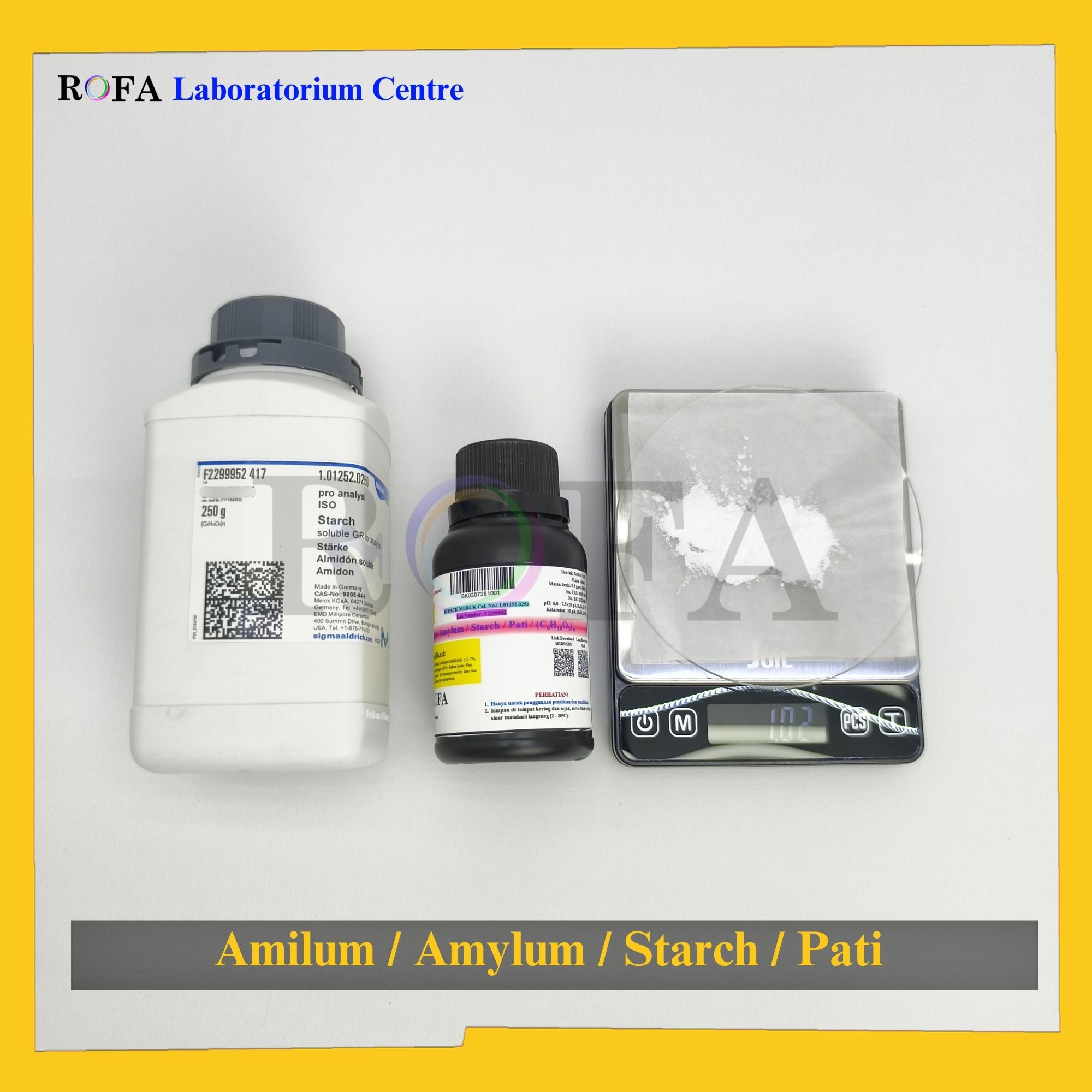 Nama Produk: MERCK Amilum / Amylum / Starch / Pati / (C6H10O5)n Pro Analisis Eceran 1 Gram
