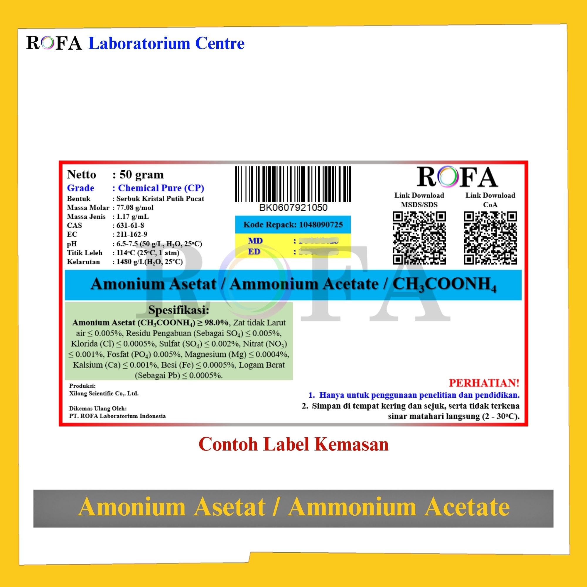 Nama Produk: ROFA Amonium Asetat / Ammonium Acetate / CH3COONH4 CP 50 Gram
