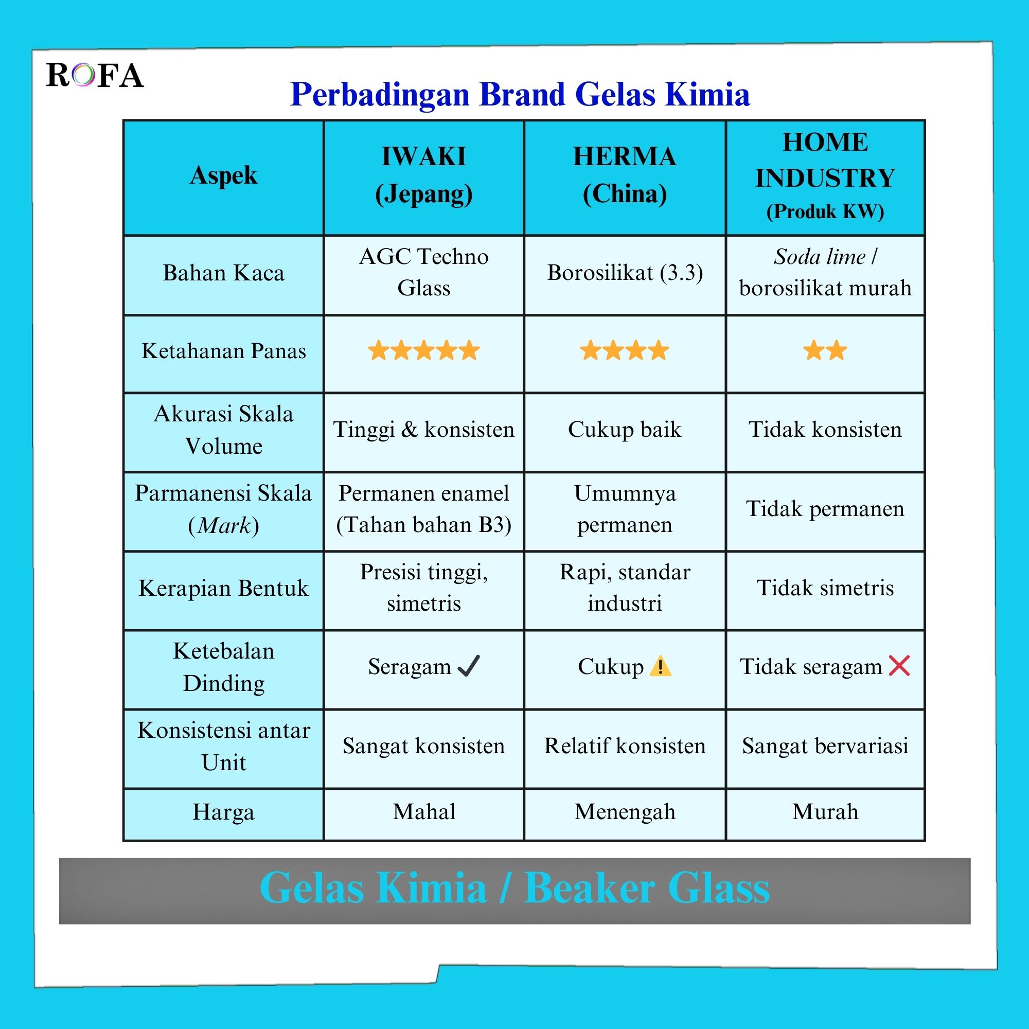 Nama Produk: Gelas Kimia / Beaker Glass / Gelas Piala / Gelas Beaker / Gelas Pyrex Low Form Tahan Panas 10 mL – 1000 mL Brand / Merek: HERMA (China) atau IWAKI (Brand Jepang, Made...