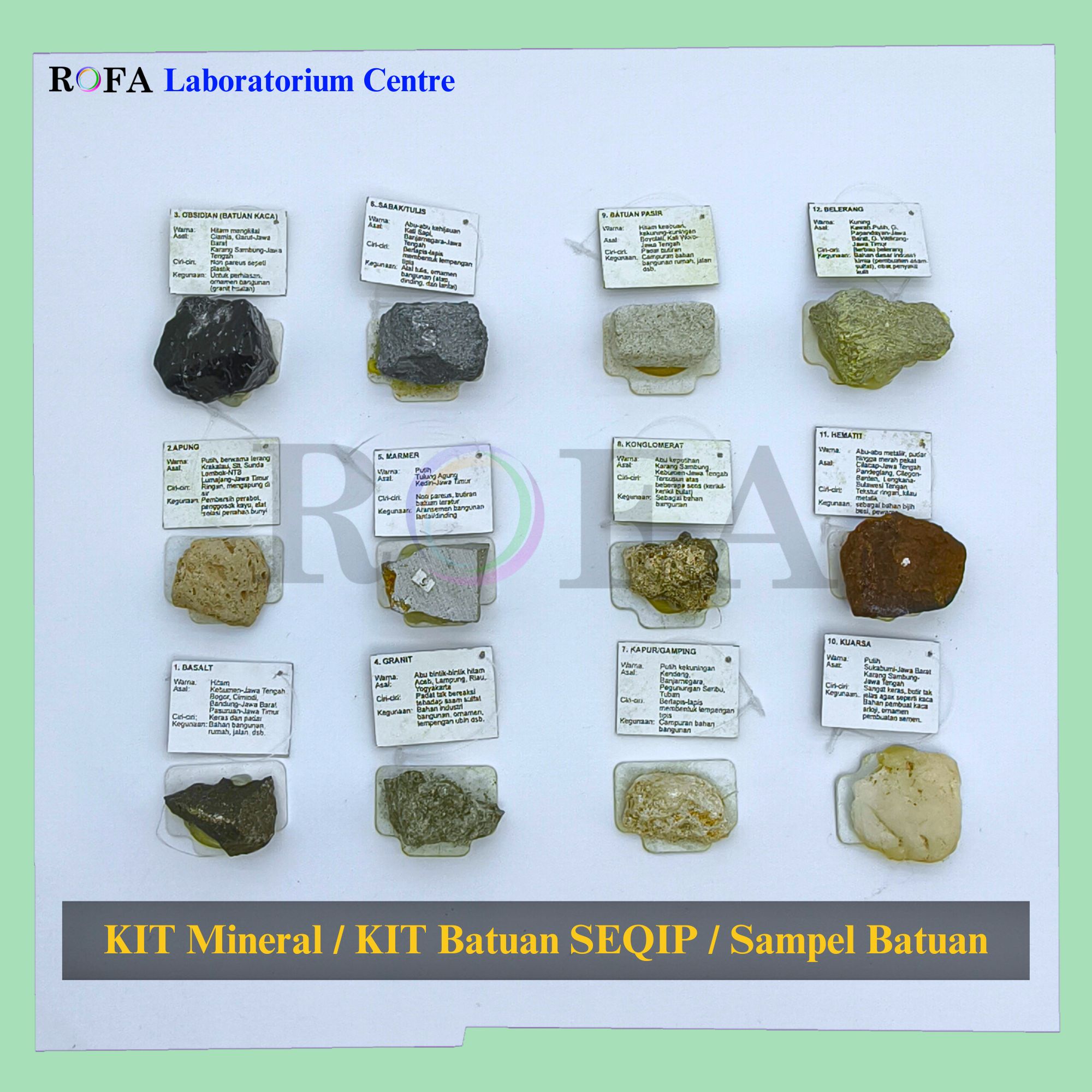 Nama Produk: KIT Mineral SEQIP / KIT Batuan SEQIP / Contoh Spesimen Batuan / Sampel Batuan Merek / Brand: PUDAK Scientific   SPESIFIKASI: Ukuran Kotak: 20 x 25 x 5,6 cm Netto Total: ±920 Gram...