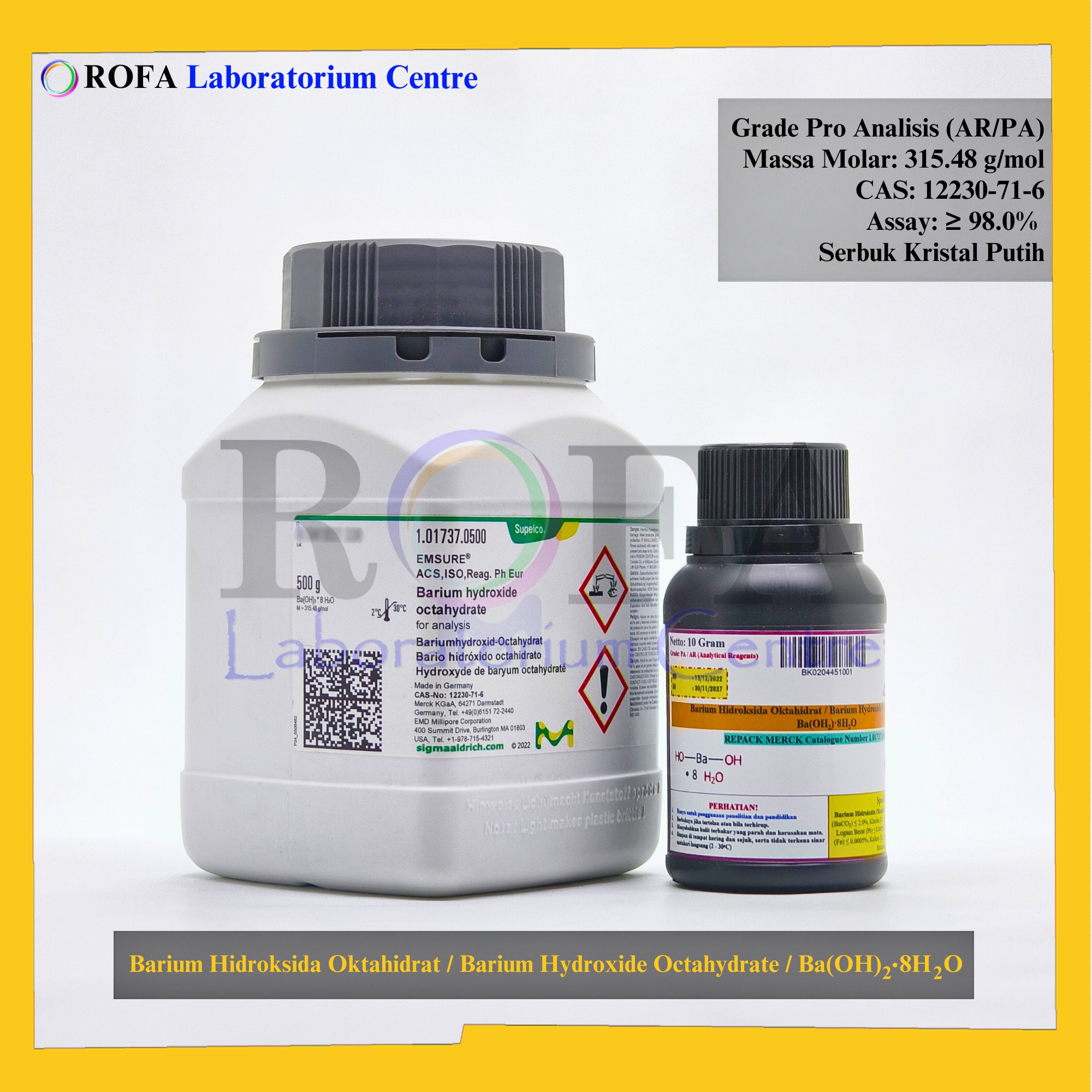 Lengkap dengan dokumen sertifikat analisis (CoA) dan MSDS / SDS (dikirim bersama barang atau bisa scan barcode).