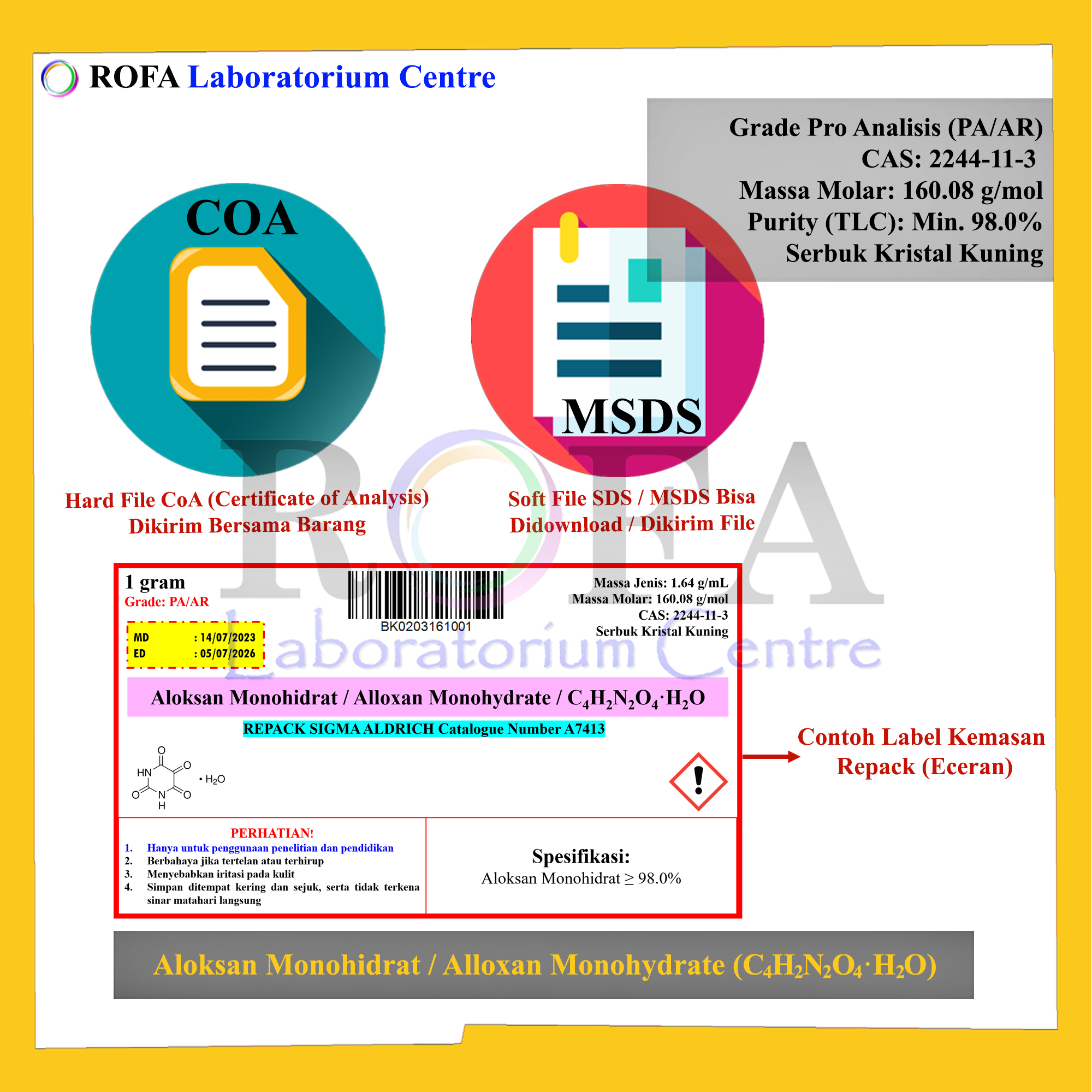 Nama Produk: MERCK Aloksan Monohidrat / Alloxan Monohydrate / C4H2N2O4.H2O Pro Analisis Pro Analis 10 Gram