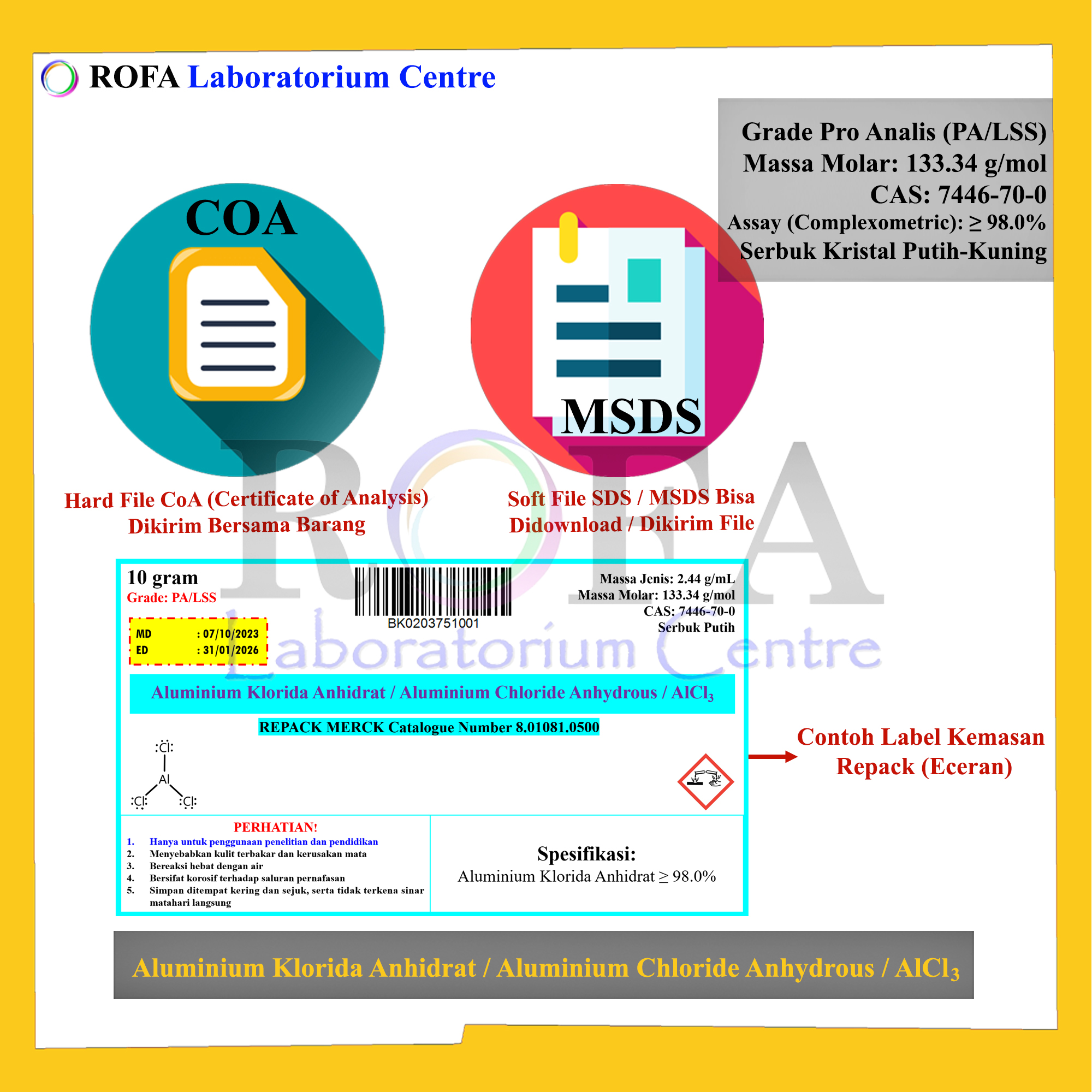 Nama Produk: MERCK Aluminium Klorida Anhidrat / Aluminium Chloride Anhydrous / AlCl3 Pro Analisis Eceran 1 Gram