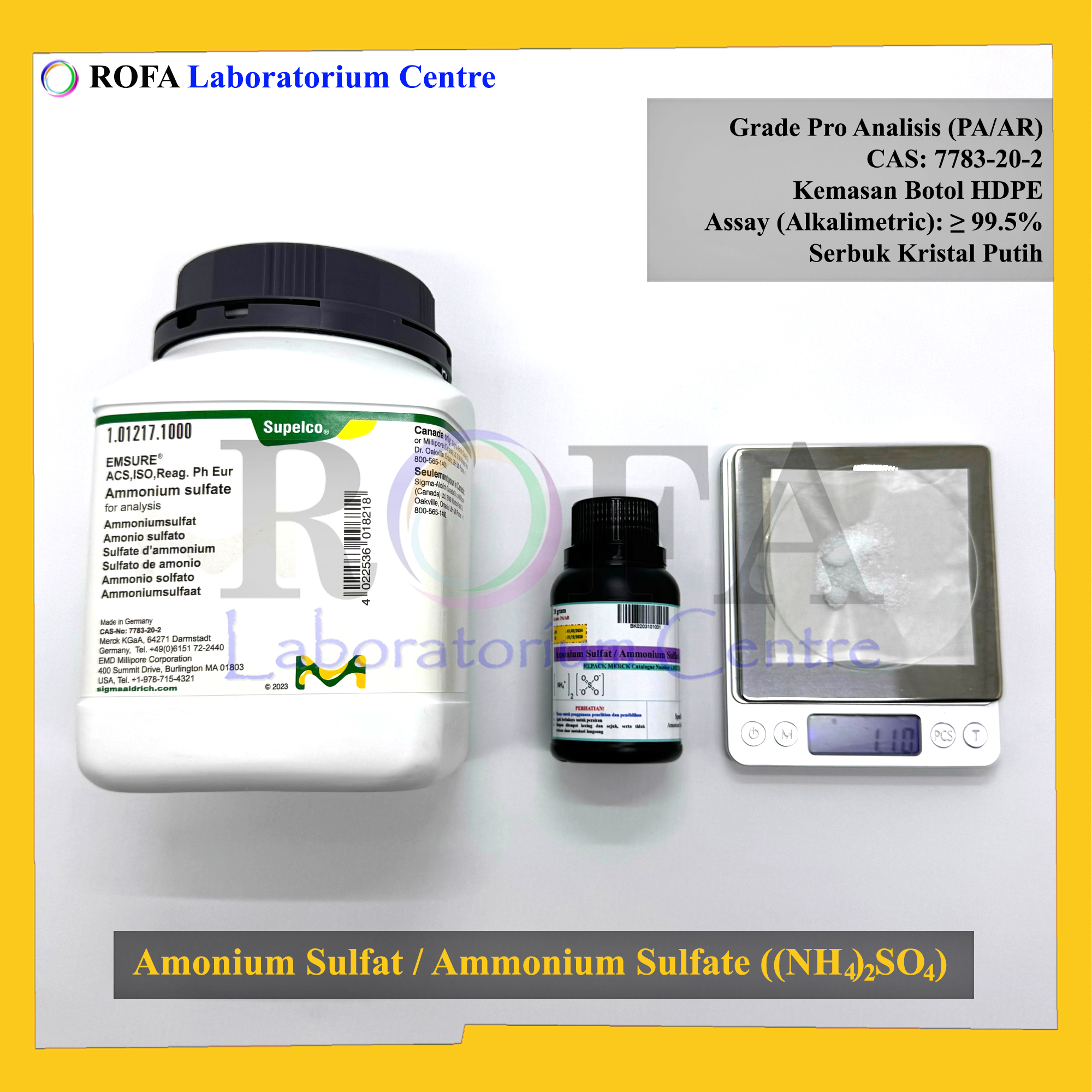 Nama Produk: MERCK Amonium Sulfat / Ammonium Sulfate / (NH4)2SO4 Pro Analisis 1000 Gram