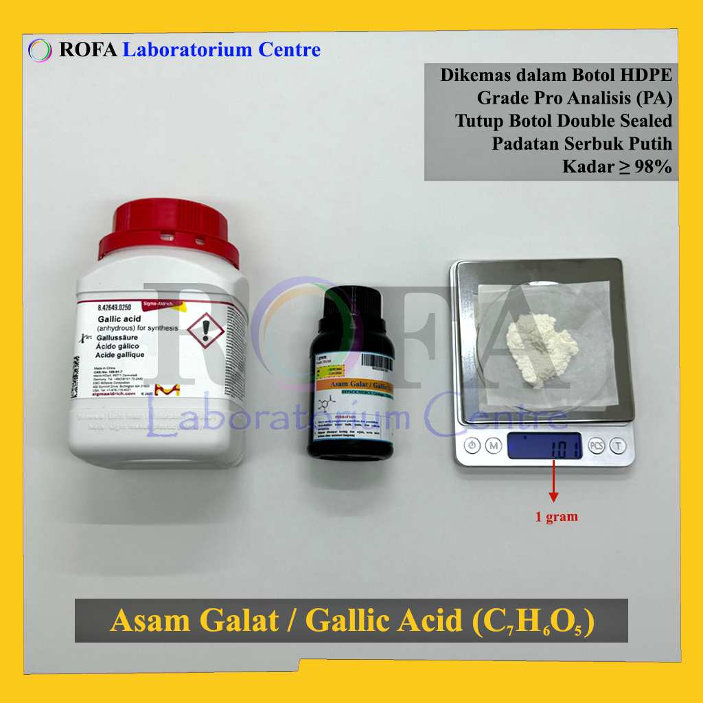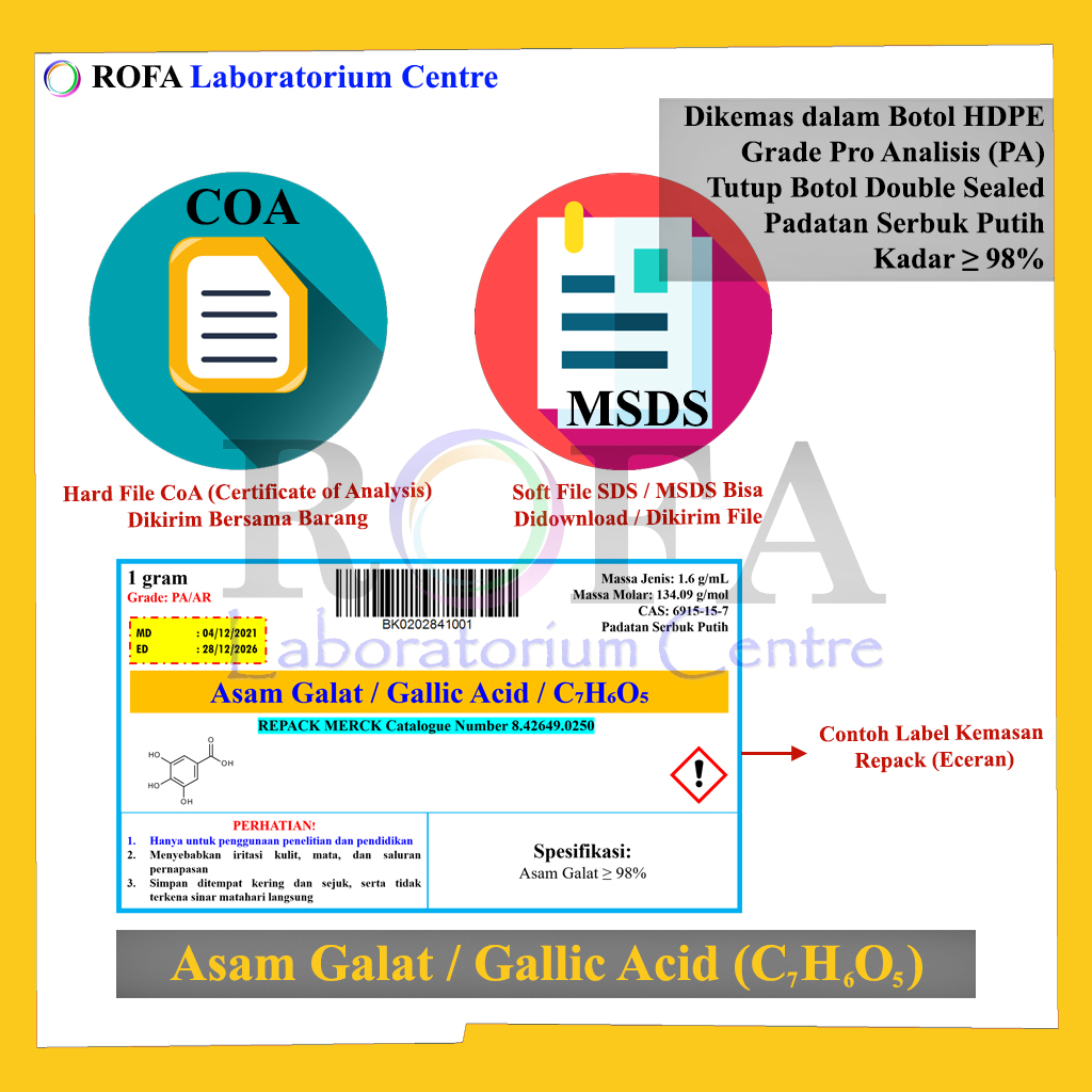 Nama Produk: MERCK Asam Galat / Gallic Acid / C7H6O5 Pro Analisis Eceran 1 Gram