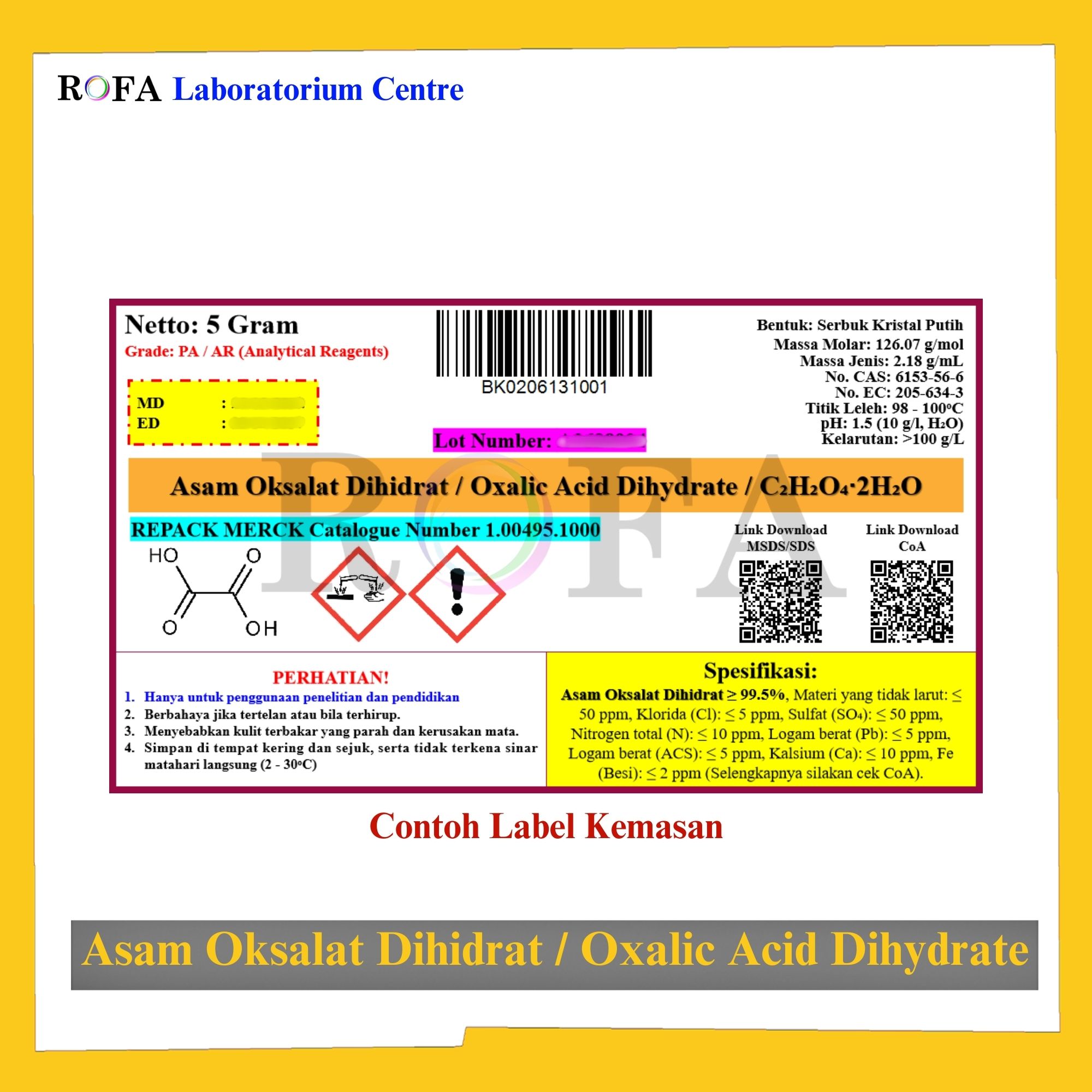 Nama Produk: MERCK Asam Oksalat Dihidrat / Oxalic Acid Dihydrate / Ethanedioic Acid Pro Analisis Eceran 1 Gram