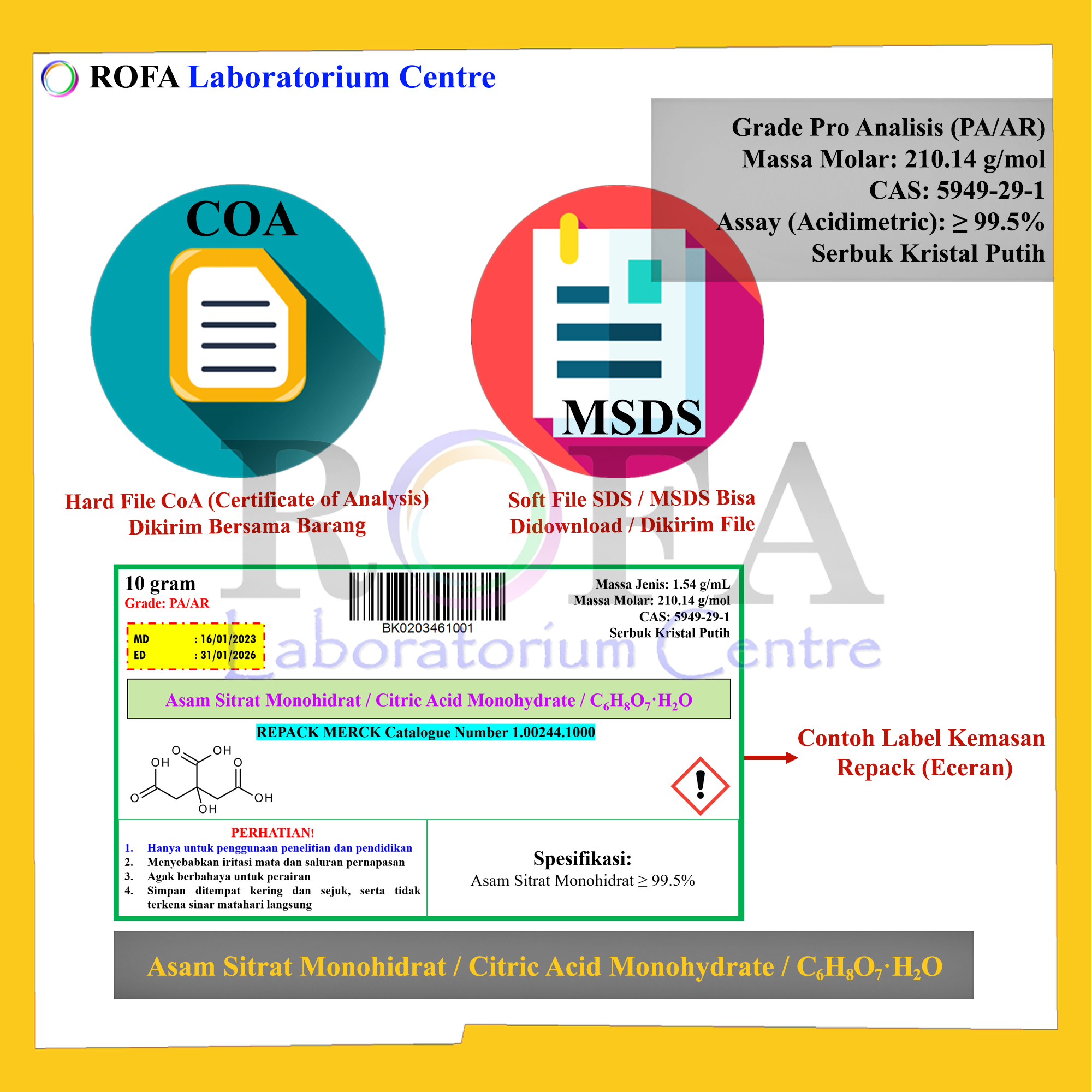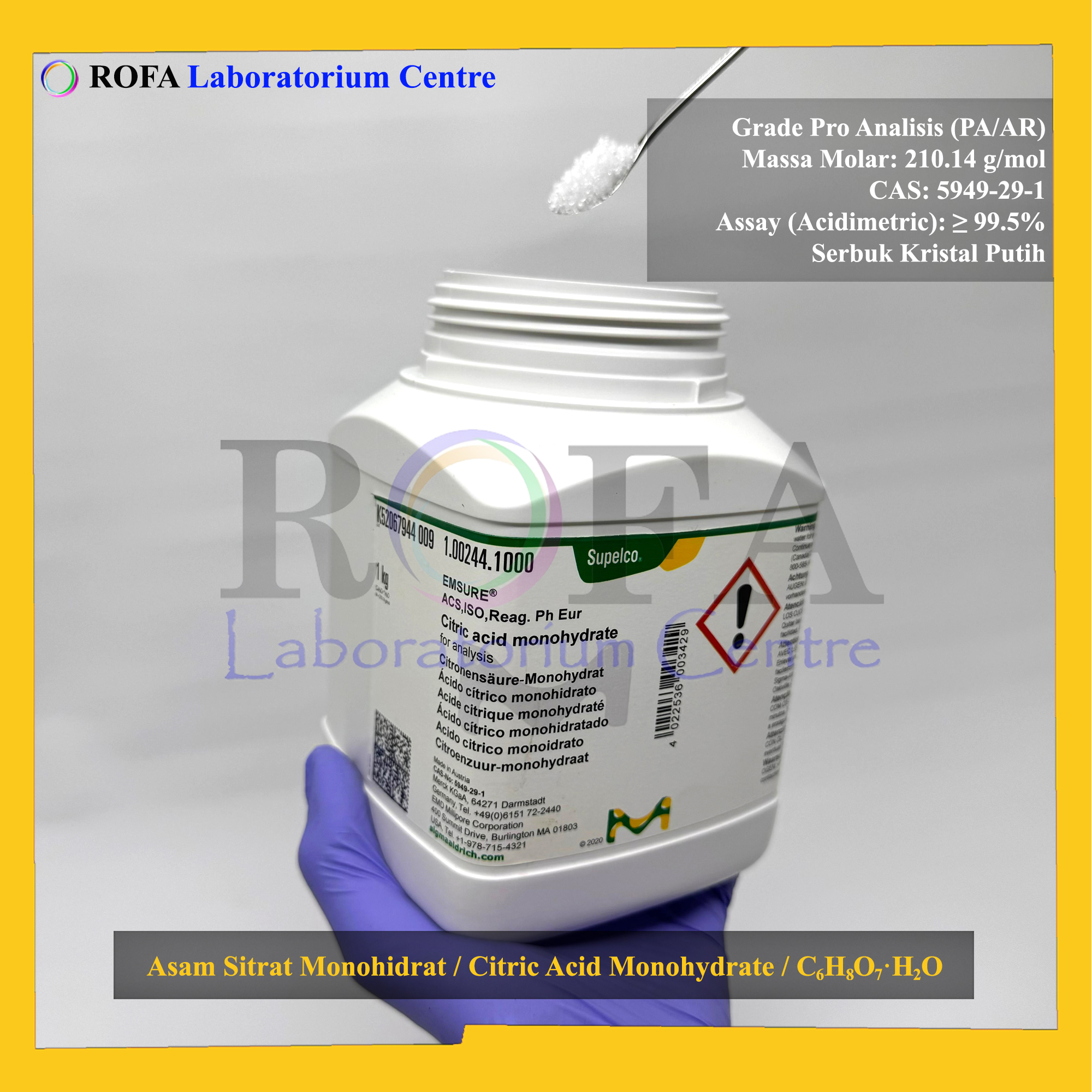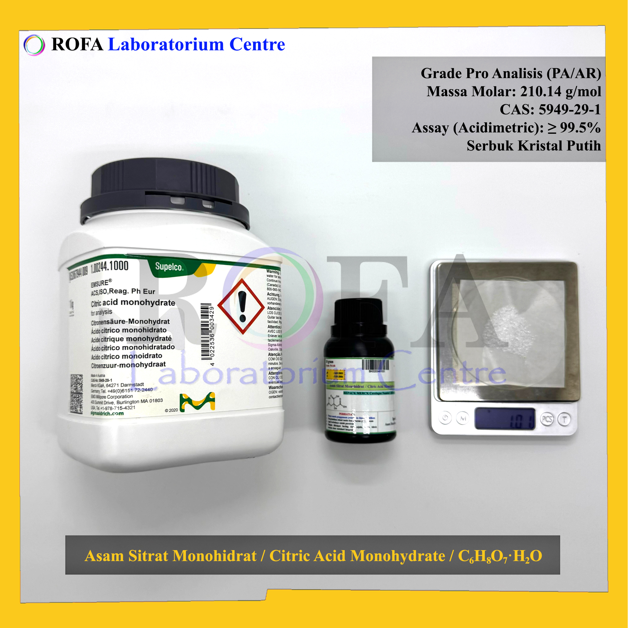 Nama Produk: MERCK Asam Sitrat Monohidrat / Citric Acid Monohydrate / C6H8O7.H2O Pro Analis Merck Eceran 1 Gram