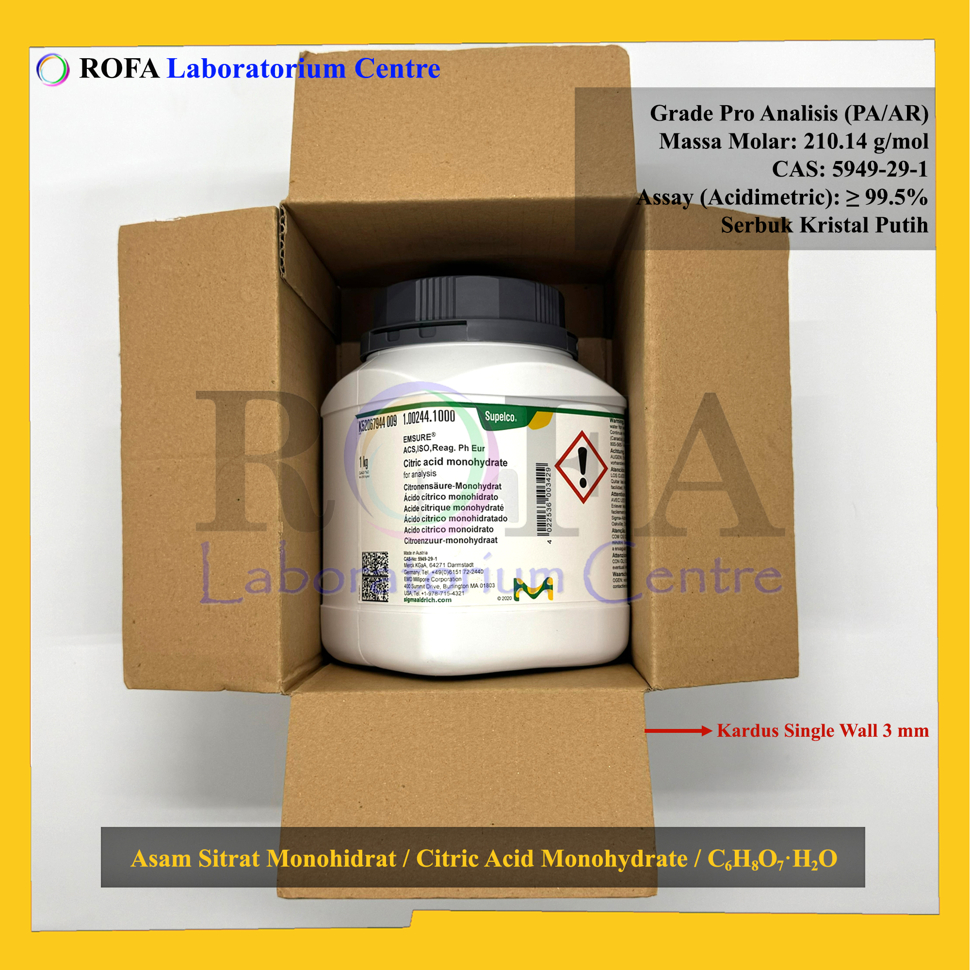 Nama Produk: MERCK Asam Sitrat Monohidrat / Citric Acid Monohydrate / C6H8O7.H2O Pro Analis Merck Merek / Brand: Merck, Jerman Catalogue Number: 1.00244.0500 atau 1.00244.1000 Status: Original Pack (Kemasan Asli) Lengkap dengan dokumen sertifikat analisis...