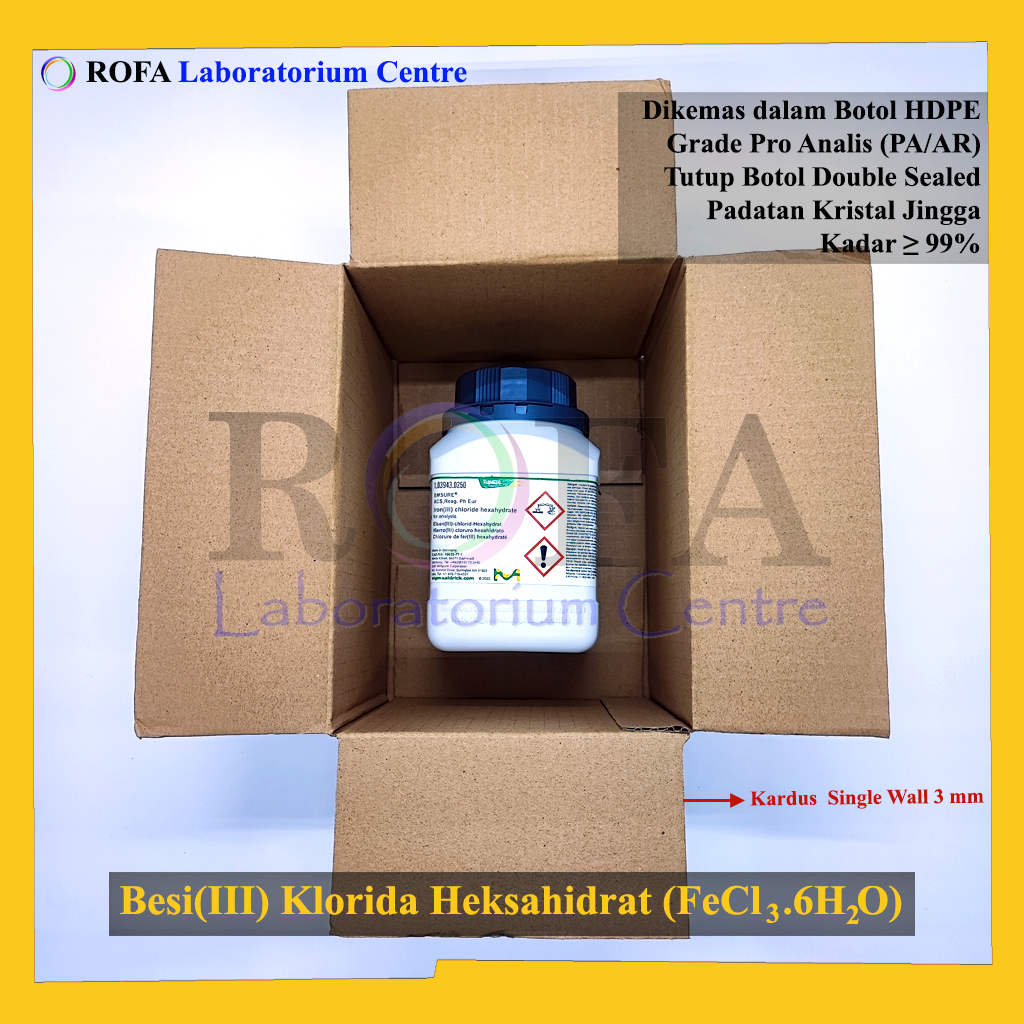 Nama Produk: MERCK Besi(III) Klorida Heksahidrat / Iron(III) Chloride Hexahydrate / FeCl3.6H2O Pro Analisis 250 Gram
