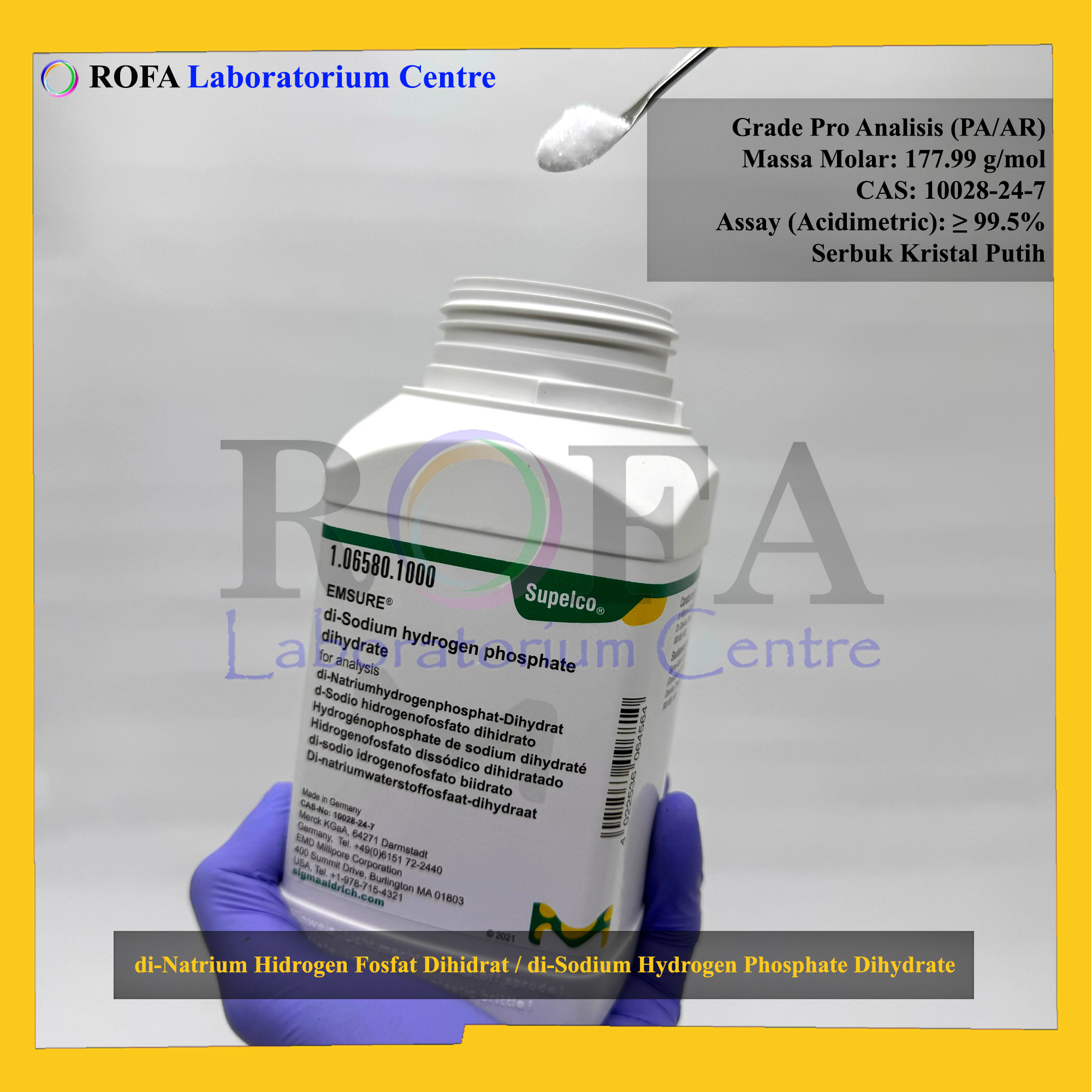 Nama Produk: MERCK Dinatrium Hidrogen Fosfat Dihidrat / Disodium Hydrogen Phosphate Dihydrate / Na2HPO4.2H2O Pro Analis Merck 500 – 1000 Gram
