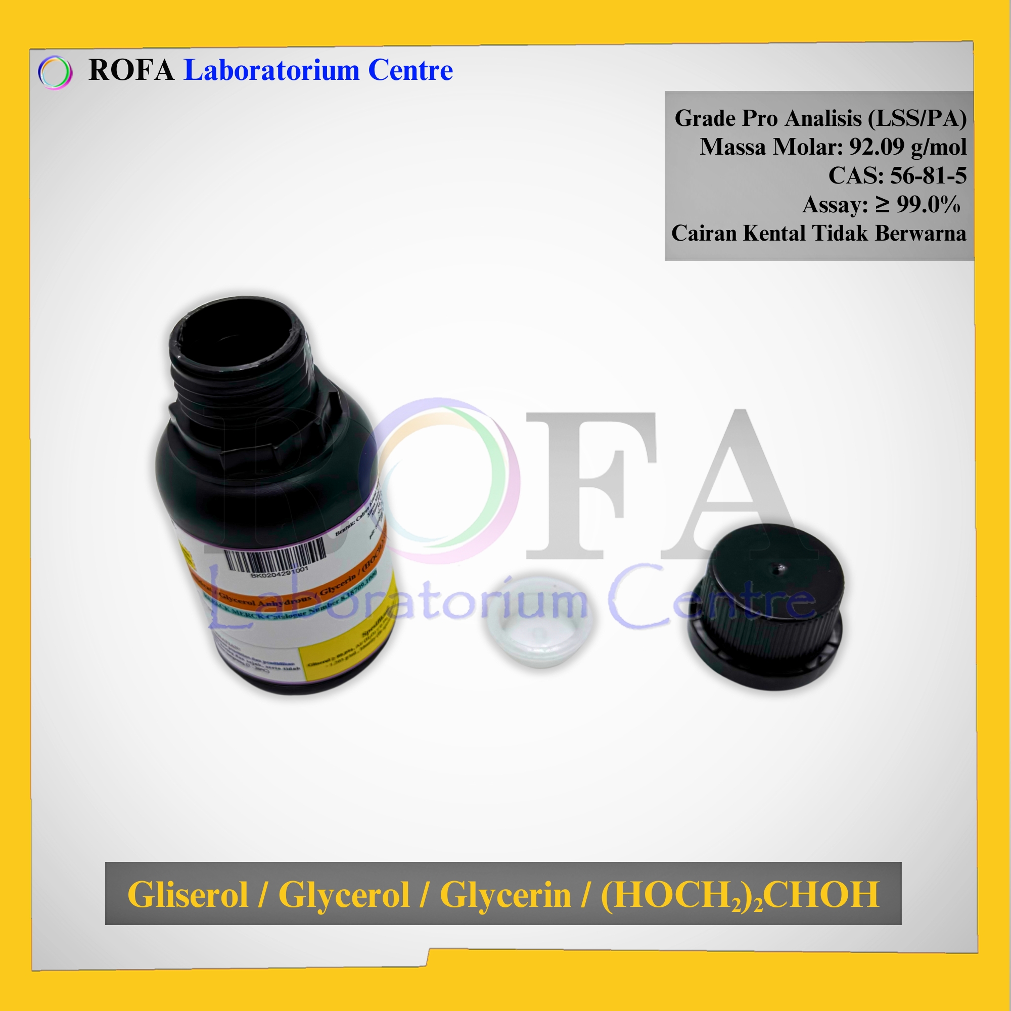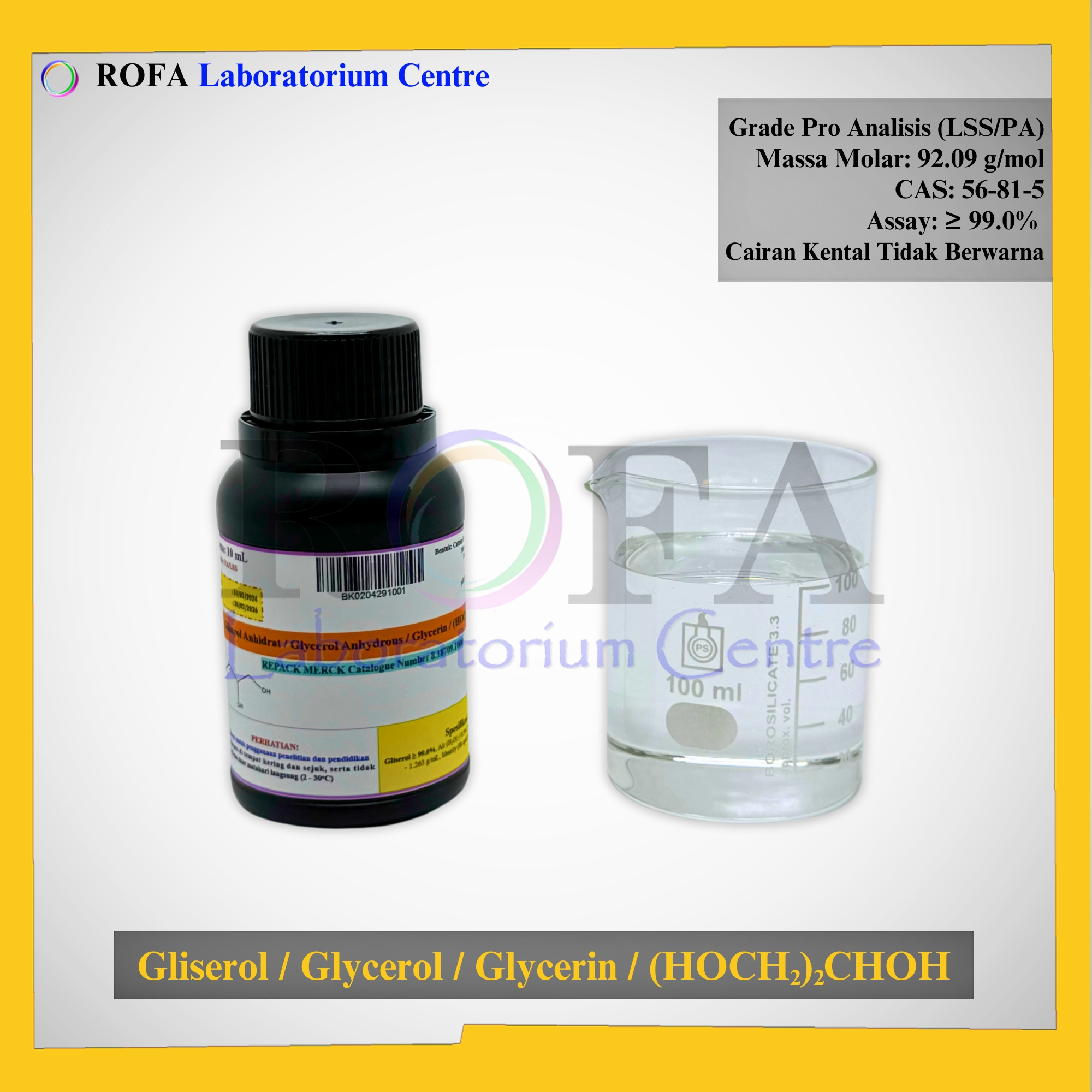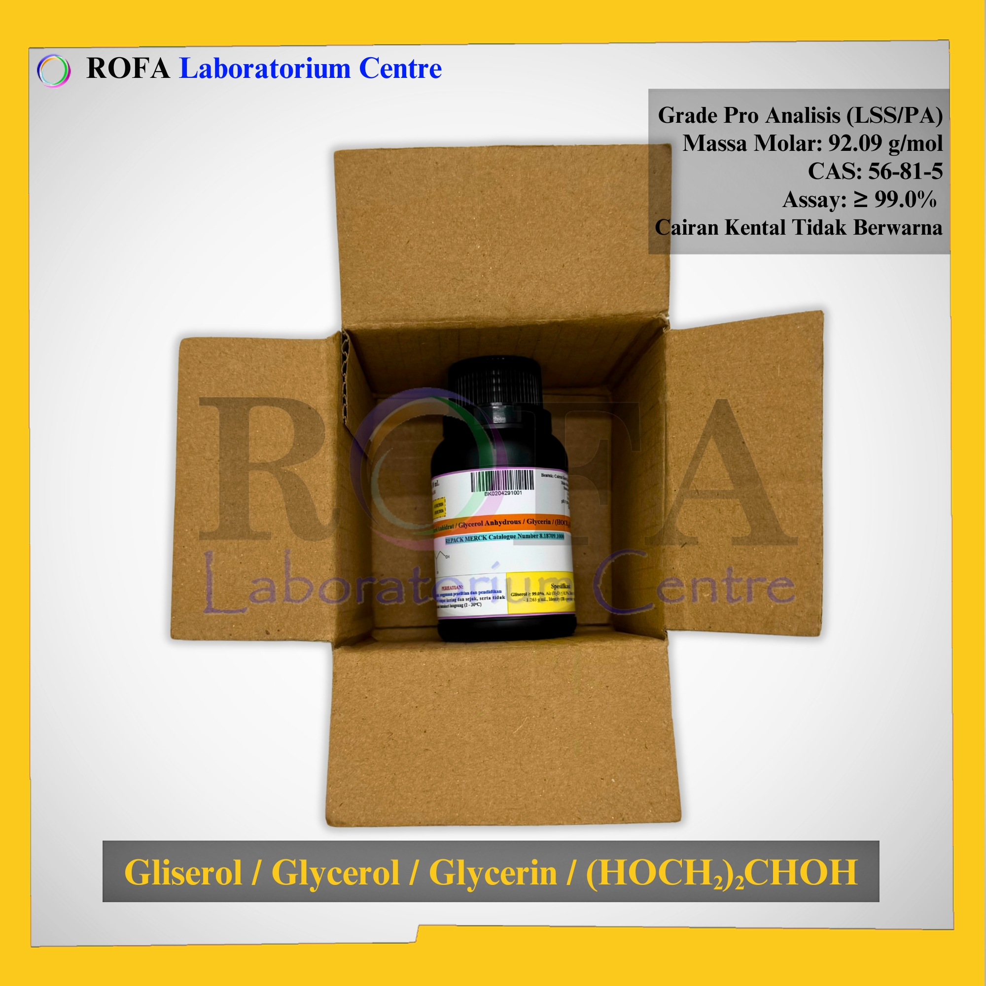 Nama Produk: MERCK Gliserol Anhidrat / Glycerol Anhydrous / Glycerin / (HOCH2)2CHOH Pro Analisis Eceran 1 mL