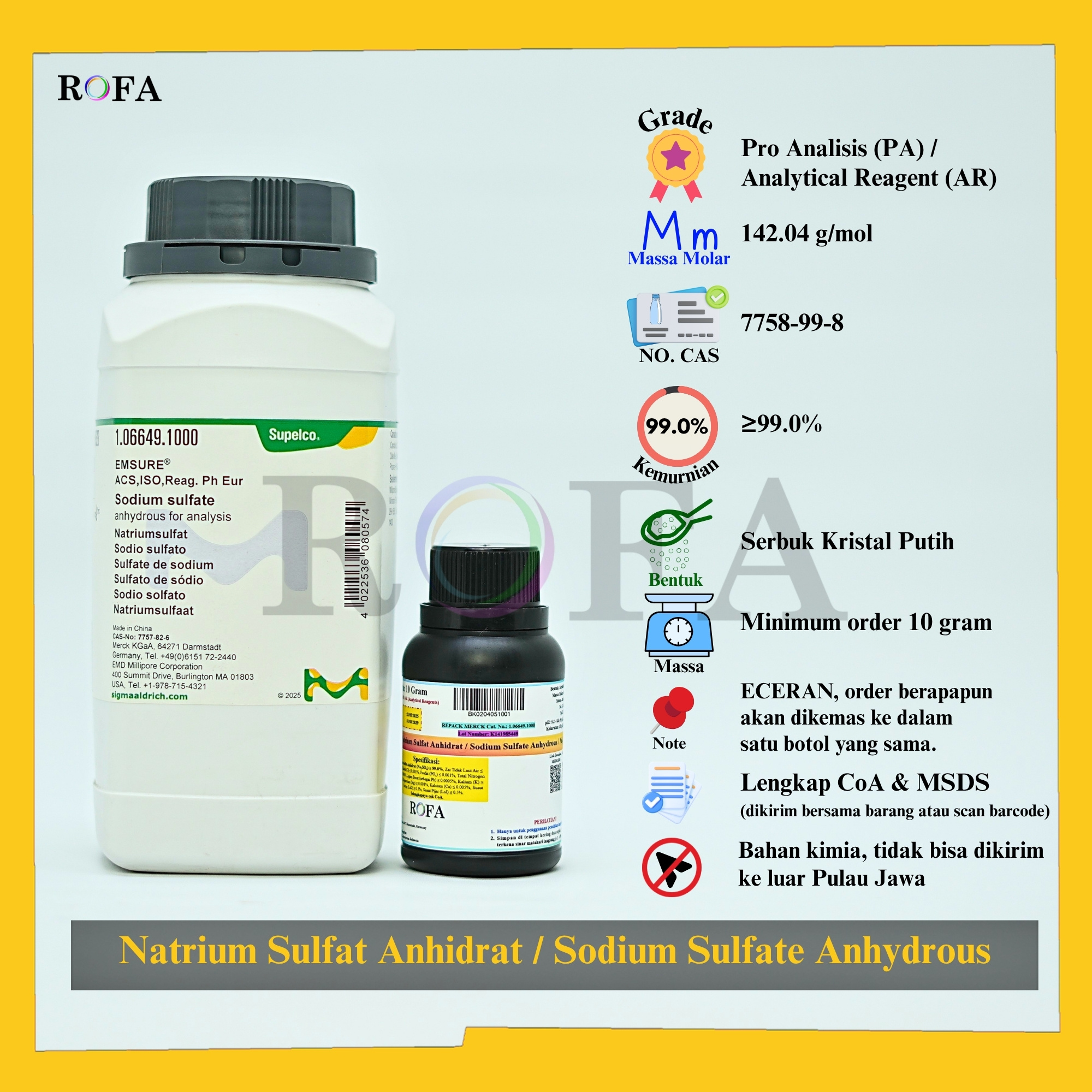Nama Produk: MERCK Glukosa Anhidrat / Glucose Anhydrous / C6H12O6 Pro Analisis Eceran 1 Gram Merek / Brand: Merck, Jerman Catalogue Number: 1.08337.1000 Status: Original Pack (Kemasan Asli) Lengkap dengan dokumen sertifikat analisis (CoA) dan...