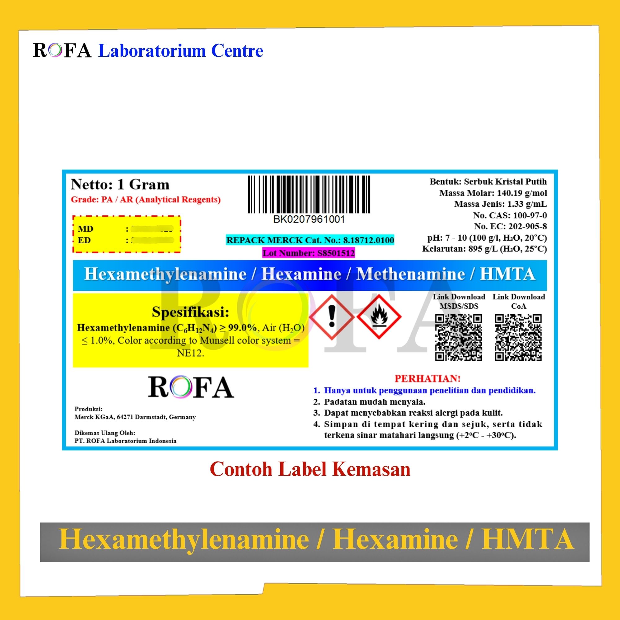 Nama Produk: MERCK Hexamethylenamine / Hexamine / Methenamine / HMTA Pro Analisis Eceran 1 Gram