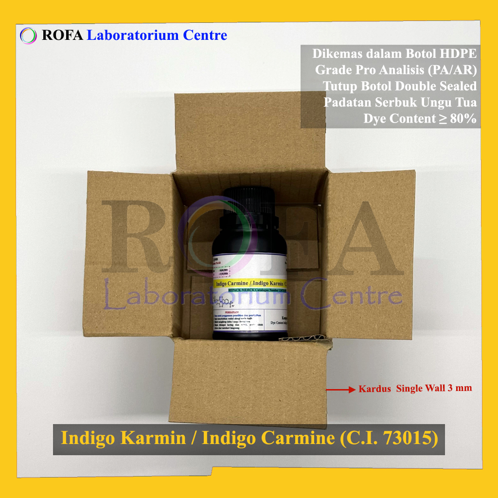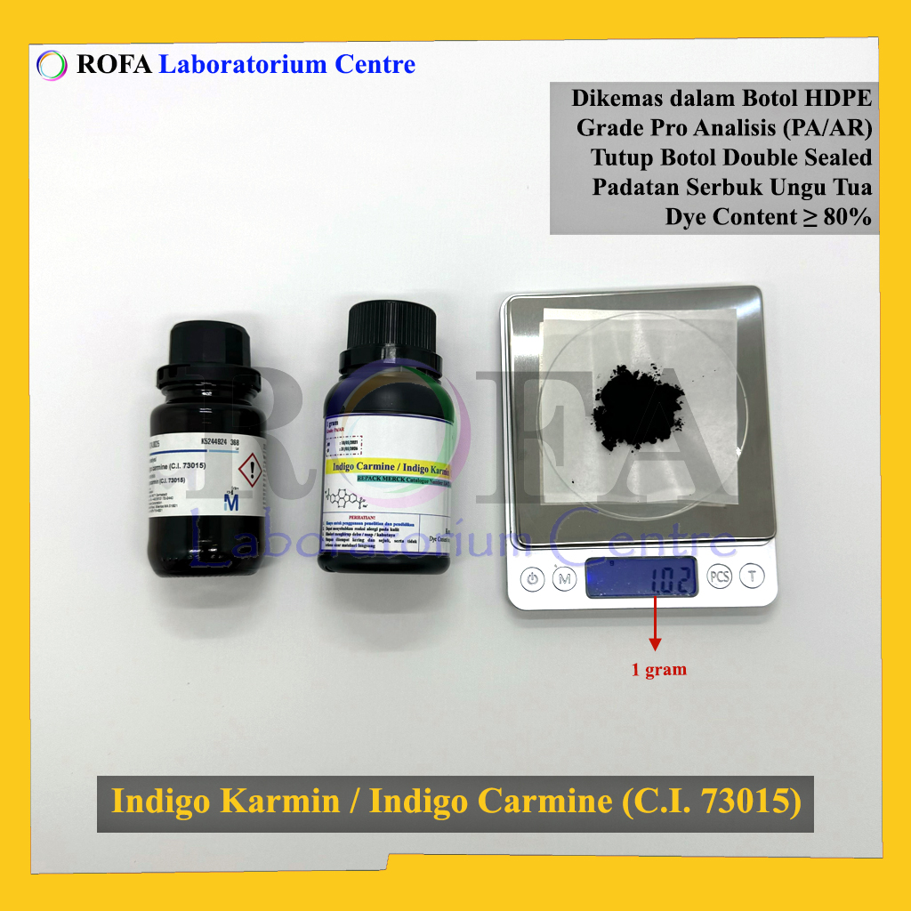 Nama Produk: MERCK Indigo Carmine / Indigo Karmina / Indigocarmin / C.I.73015 Pro Analisis Eceran 1 Gram Merek / Brand: Merck, Jerman Catalogue Number: 1.04724.0025 Status: Repack (Kemas Ulang / Eceran) Lengkap dengan dokumen sertifikat...