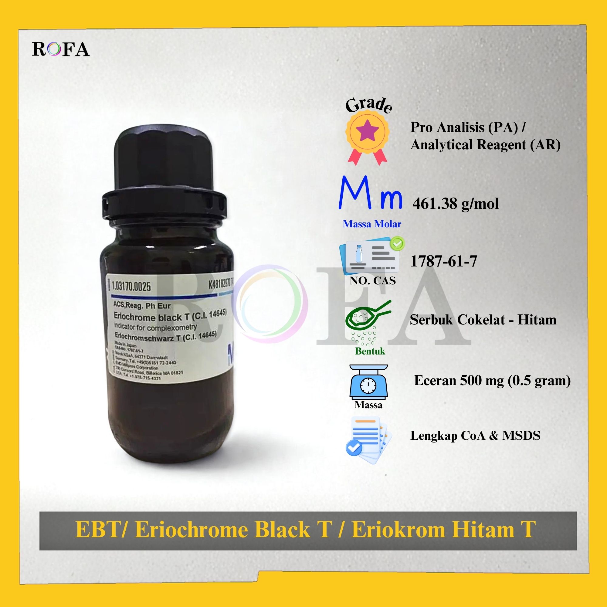 Lengkap dengan dokumen sertifikat analisis (CoA) dan MSDS / SDS (dikirim bersama barang atau bisa scan barcode).