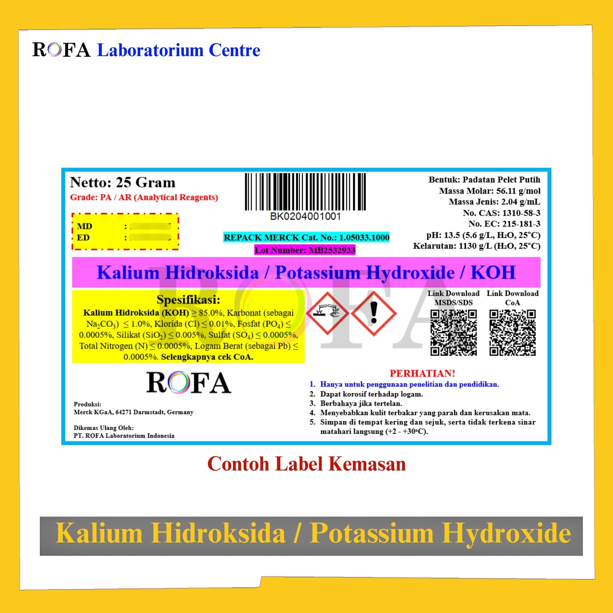 Nama Produk: MERCK Kalium Hidroksida / Potassium Hydroxide / KOH Pro Analisis Merck Eceran 1 Gram