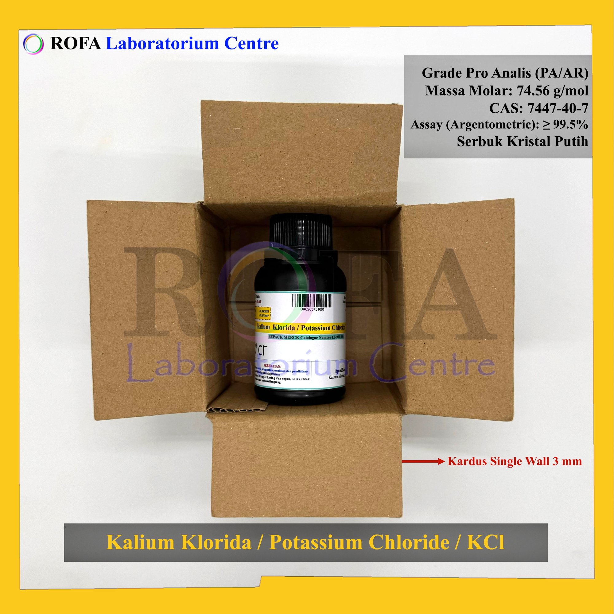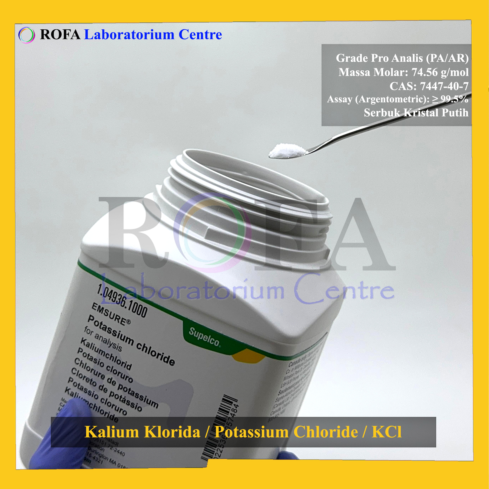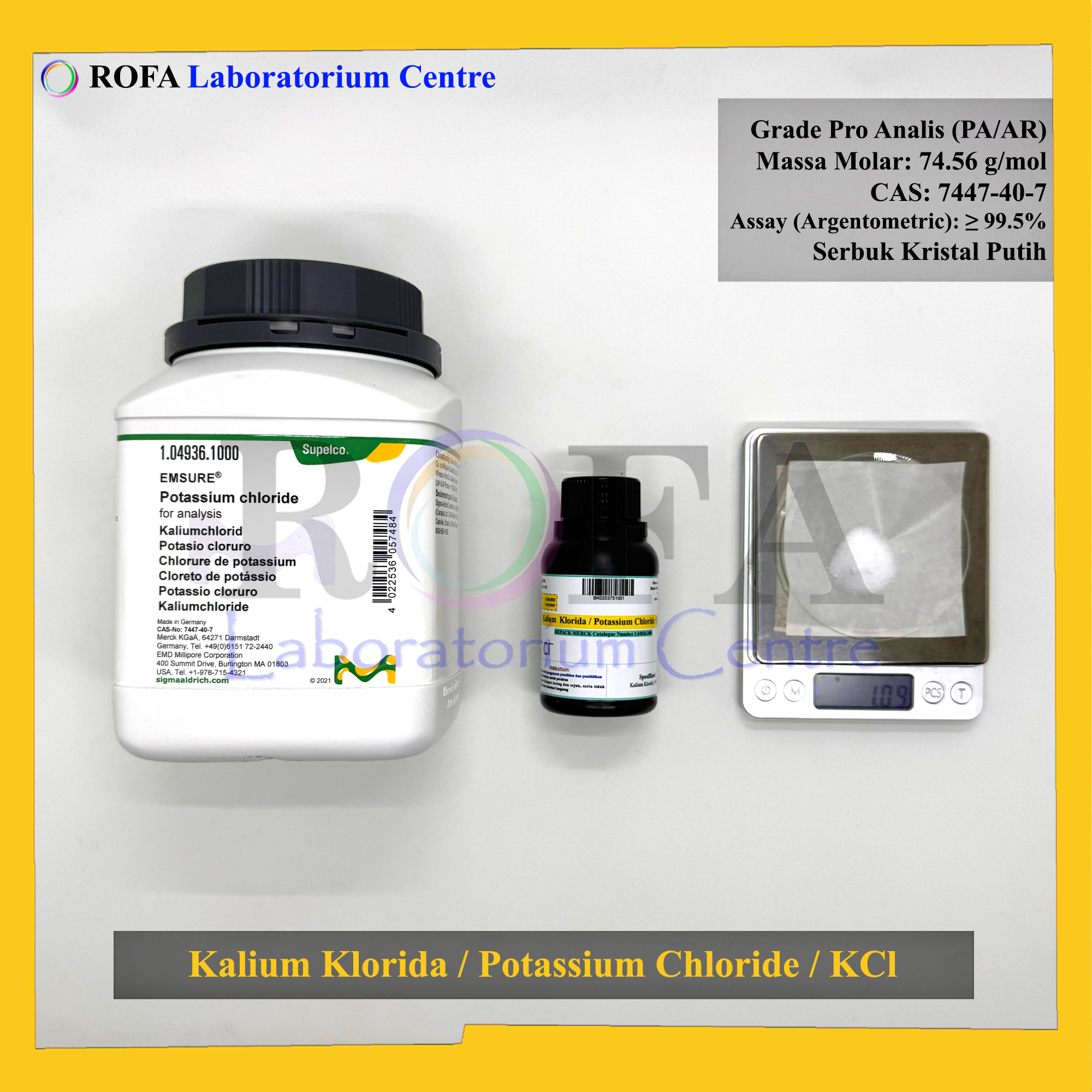 Nama Produk: MERCK Kalium Klorida / Potassium Chloride / KCl Pro Analisis Eceran 1 Gram