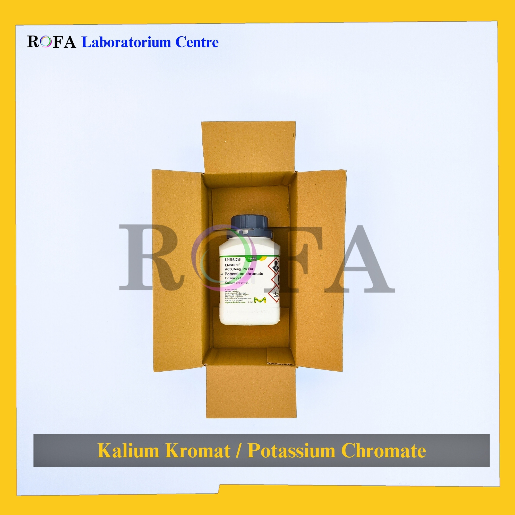 Nama Produk: MERCK Kalium Kromat / Potassium Chromate / K2CrO4 Pro Analisis 250 Gram Merek / Brand: Merck, Jerman Catalogue Number: 1.04952.0250 Status: Original Pack (Kemasan Asli) Lengkap dengan dokumen sertifikat analisis (CoA) dan MSDS...