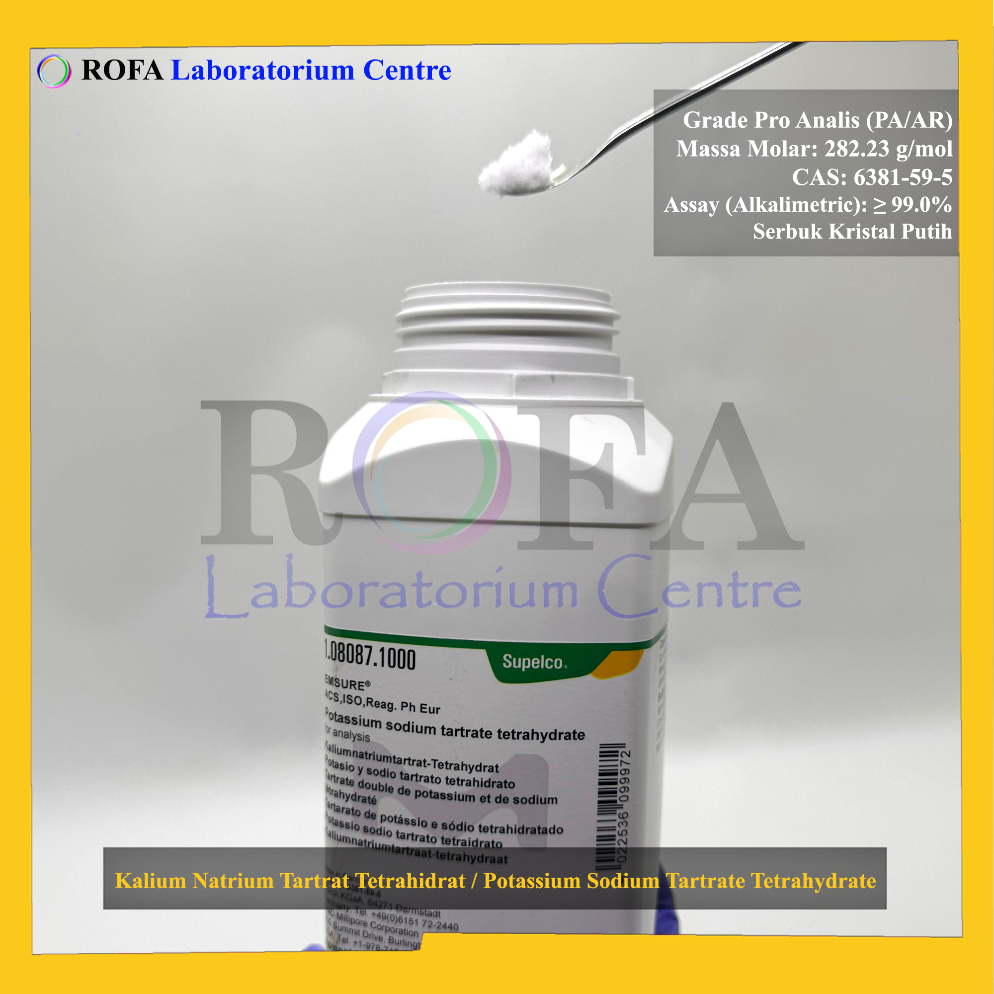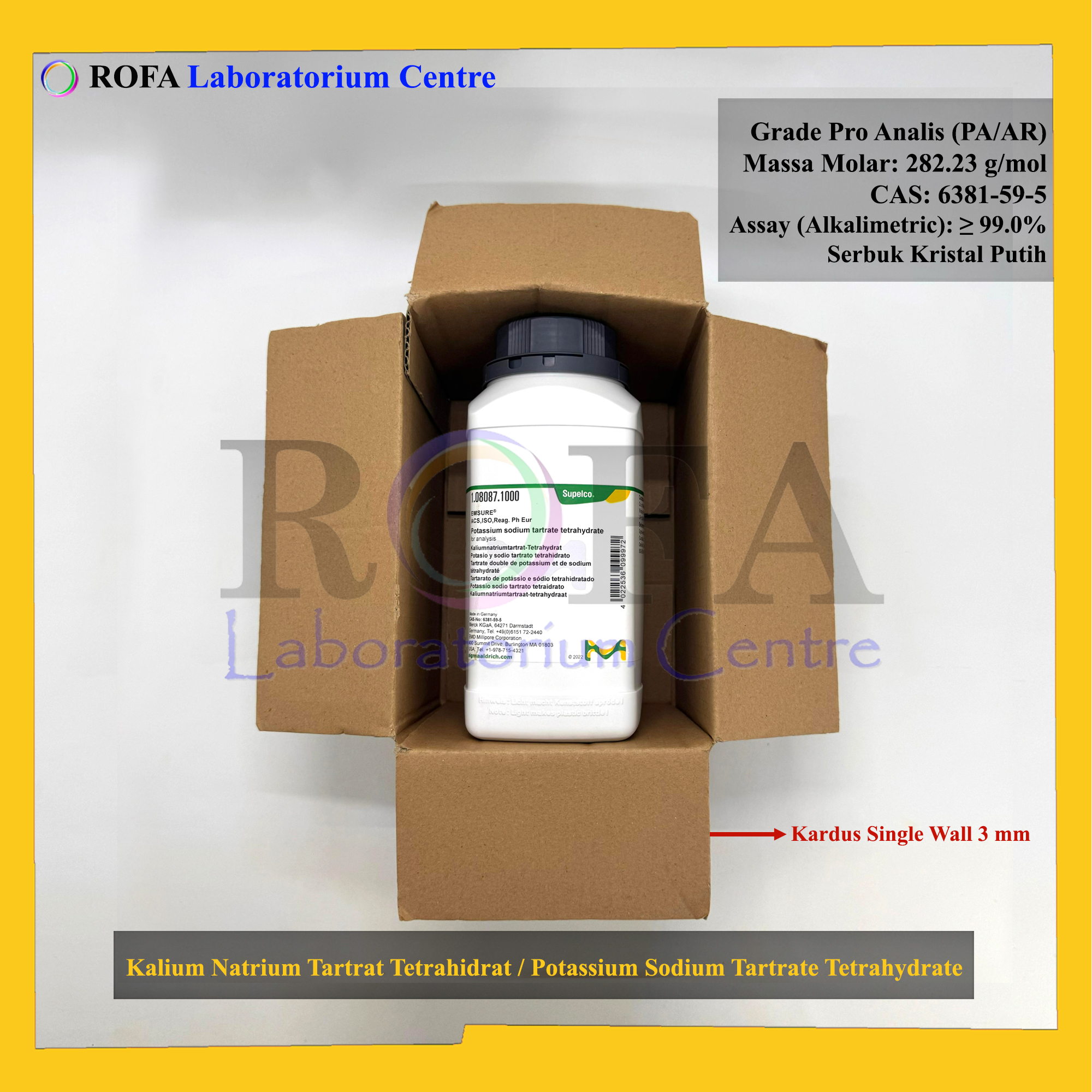 Nama Produk: MERCK Kalium Natrium Tartrat Tetrahidrat / Potassium Sodium Tartrate Tetrahydrate / KNaC4H4O6.4H2O Pro Analisis 500 – 1000 Gram