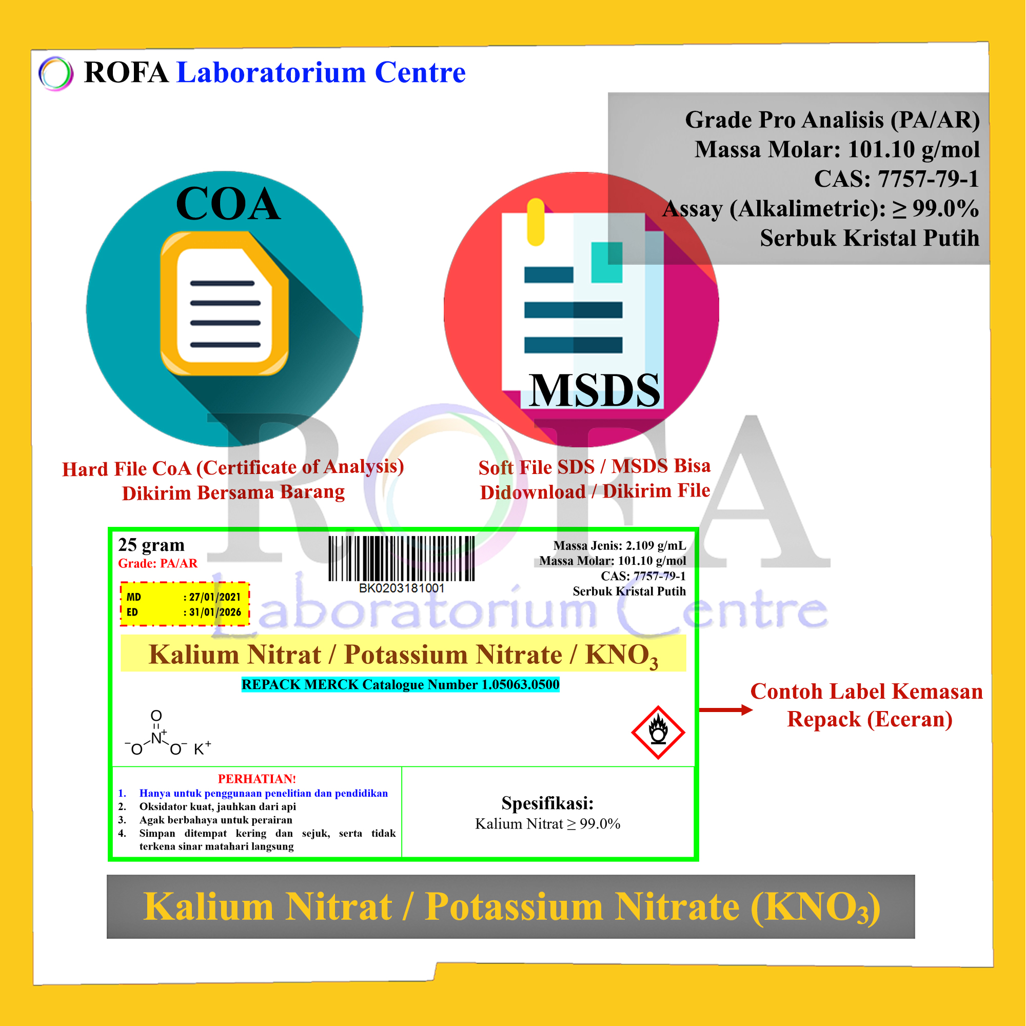 Lengkap dengan dokumen sertifikat analisis (CoA) dan MSDS / SDS (dikirim bersama barang atau bisa scan barcode).