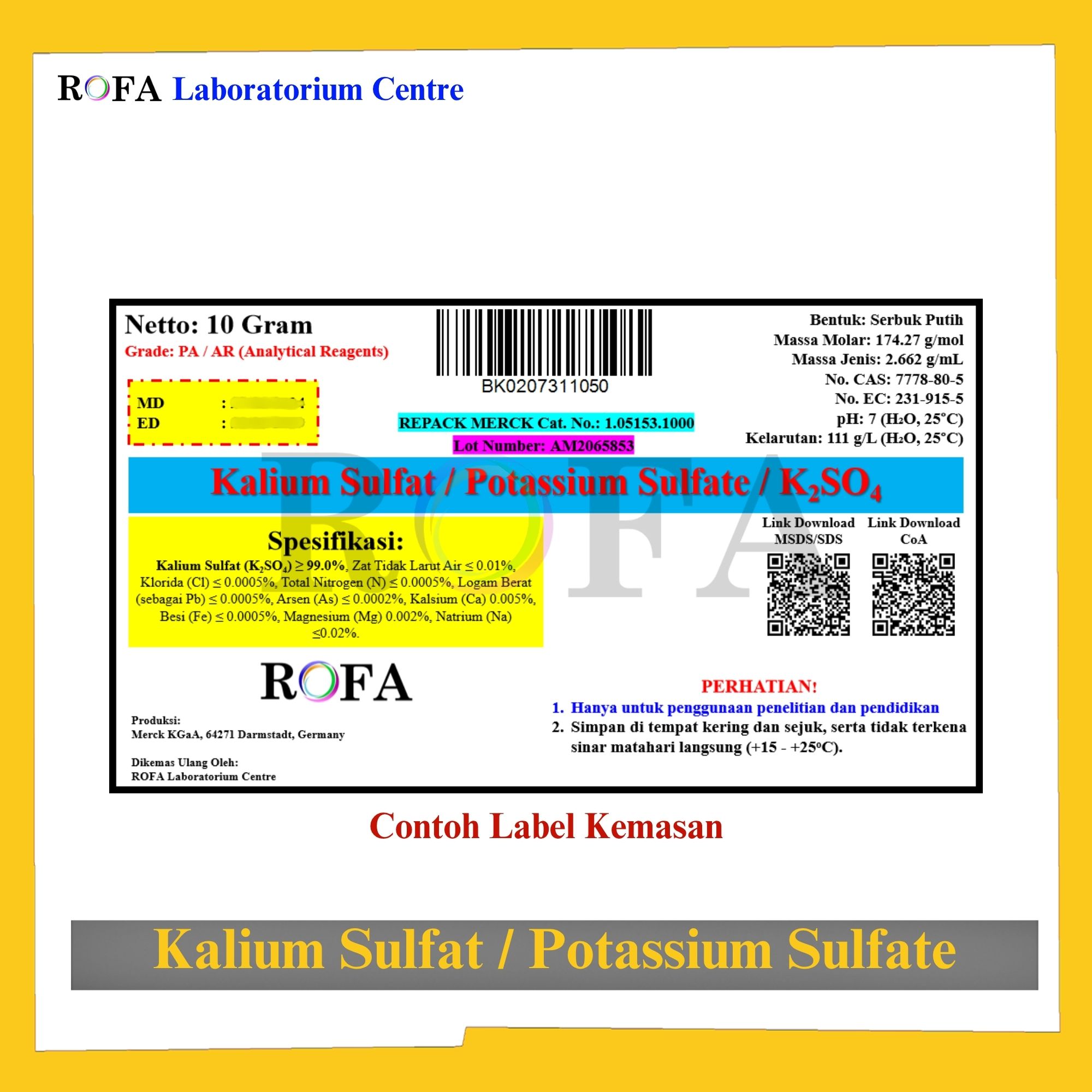 Nama Produk: MERCK Kalium Sulfat / Potassium Sulfate / K2SO4 Pro Analisis Eceran 1 Gram