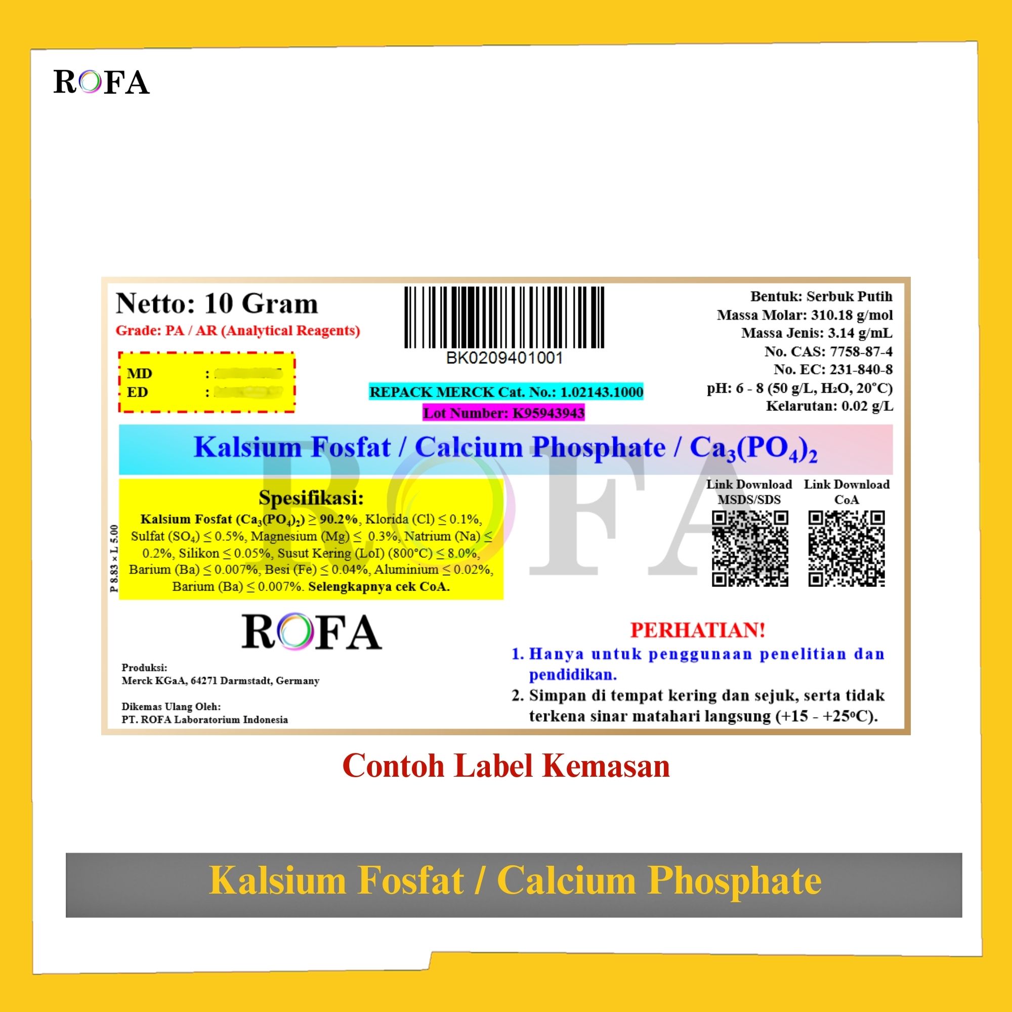 Nama Produk: MERCK Kalsium Fosfat / Calcium Phosphate / Ca3(PO4)2 Pro Analisis Eceran 1 Gram