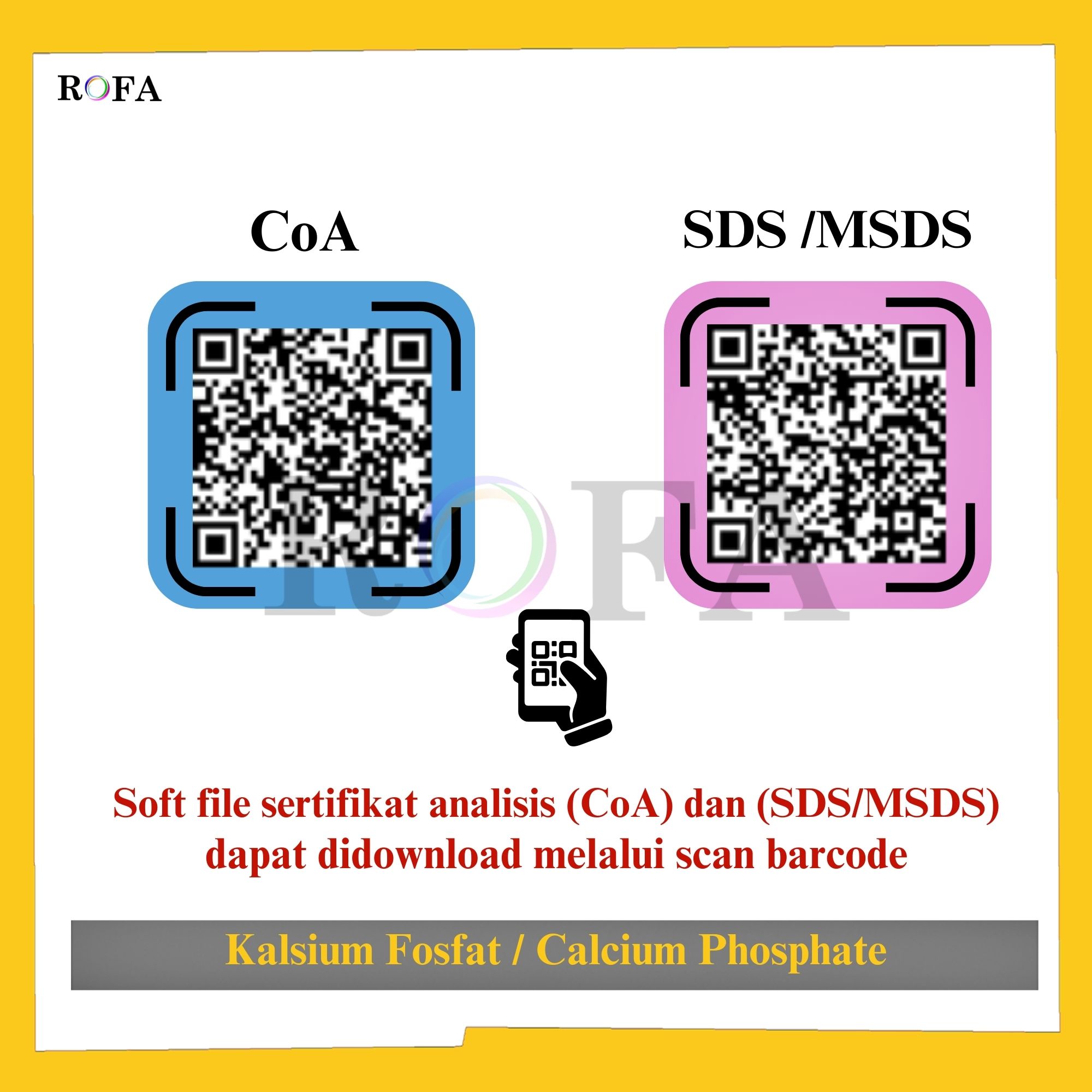 Lengkap dengan dokumen sertifikat analisis (CoA) dan MSDS / SDS (dikirim bersama barang atau bisa scan barcode).