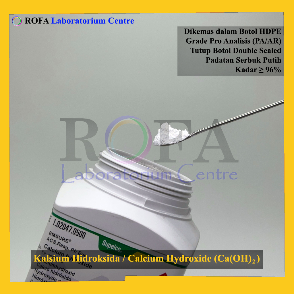 Nama Produk: MERCK Kalsium Hidroksida / Calcium Hydroxide / Ca(OH)2 Pro Analisis Eceran 1 Gram Merek / Brand: Merck, Jerman Catalogue Number: 1.02047.0500 Status: Repack (Kemas Ulang / Eceran) Lengkap dengan dokumen sertifikat analisis (CoA)...