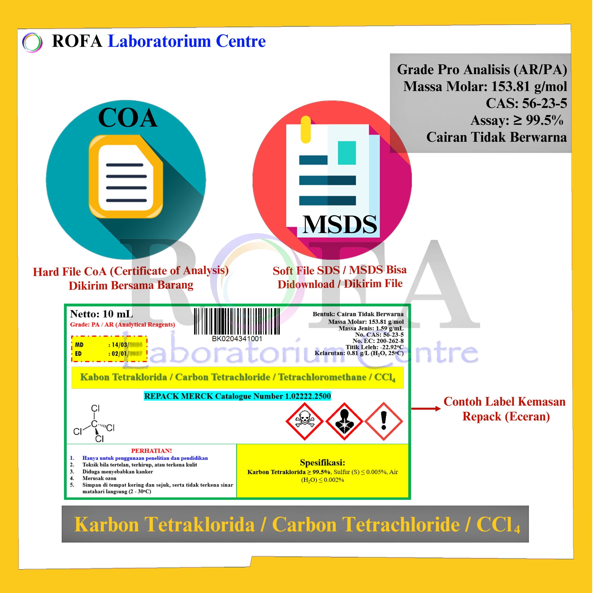 Nama Produk: MERCK Karbon Tetraklorida / Carbon Tetrachloride / CCl4 Pro Analisis Eceran 10 mL – 50 mL