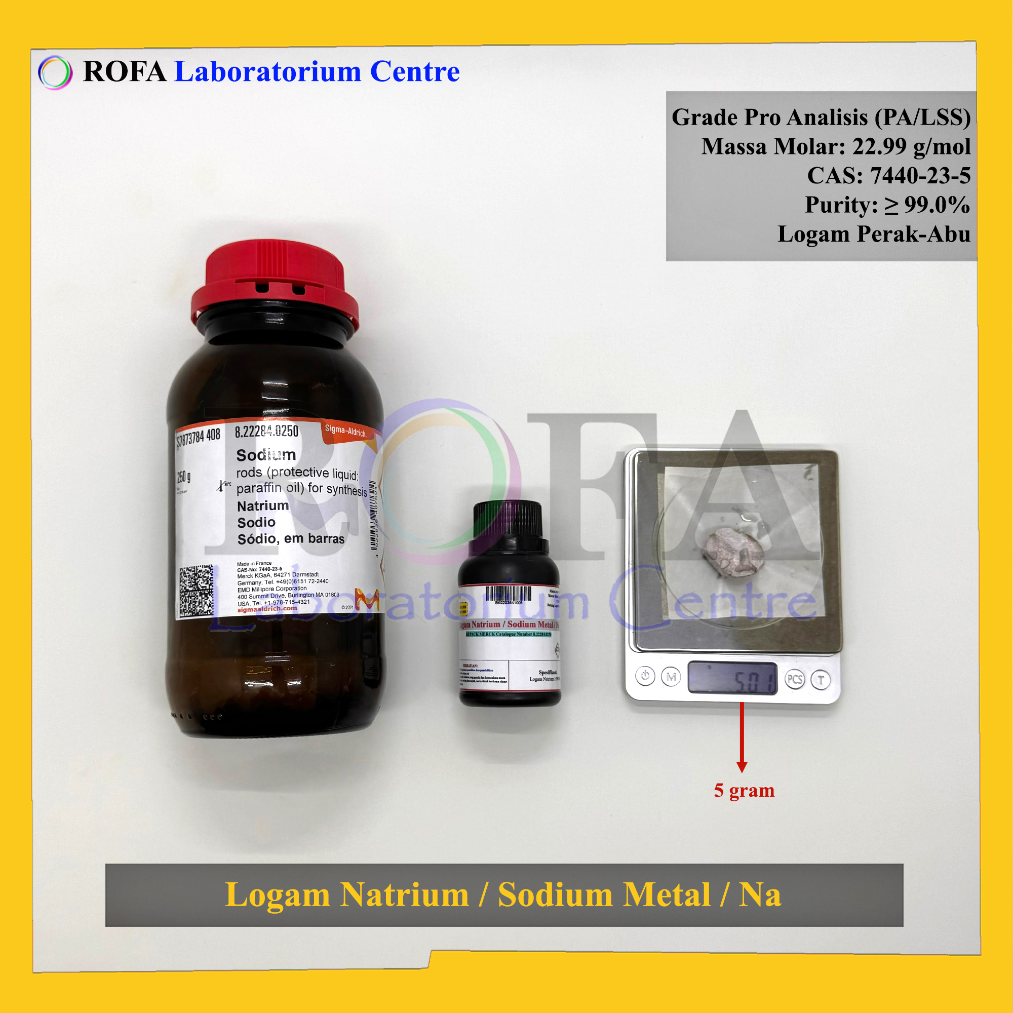 Nama Produk: Merck Logam Natrium / Sodium Metal / Sodium Rod / Na Pro Analisis Eceran 5 Gram