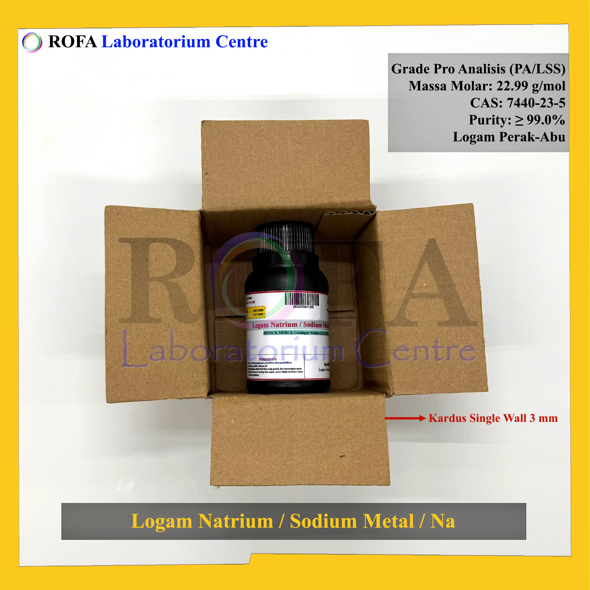 Nama Produk: Merck Logam Natrium / Sodium Metal / Sodium Rod / Na Pro Analisis Eceran 5 Gram Merek / Brand: Merck, Jerman Catalogue Number: 8.22284.0250 Status: Repack (Kemas Ulang / Eceran) Lengkap dengan dokumen...
