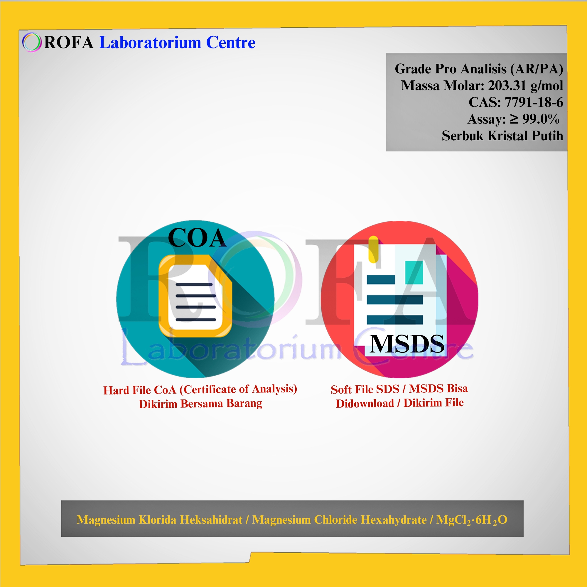 Lengkap dengan dokumen sertifikat analisis (CoA) dan MSDS / SDS (dikirim bersama barang atau bisa scan barcode).