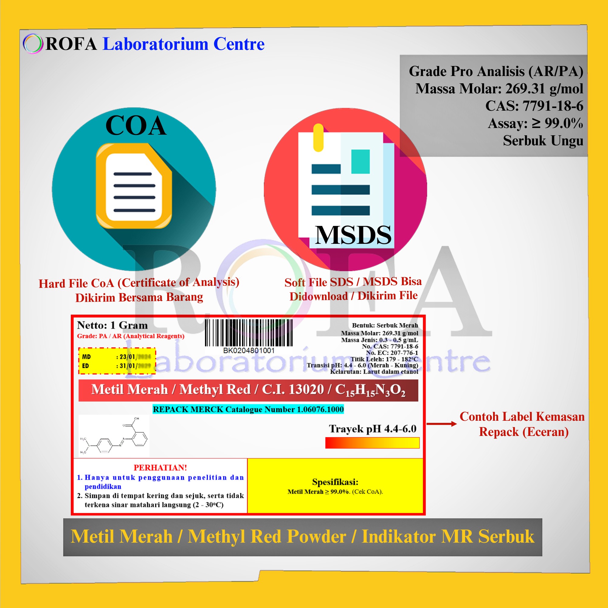 Lengkap dengan dokumen sertifikat analisis (CoA) dan MSDS / SDS (dikirim bersama barang atau bisa scan barcode).