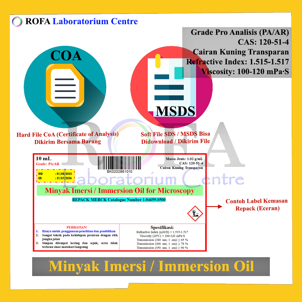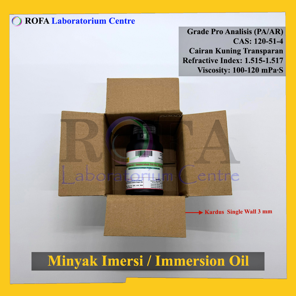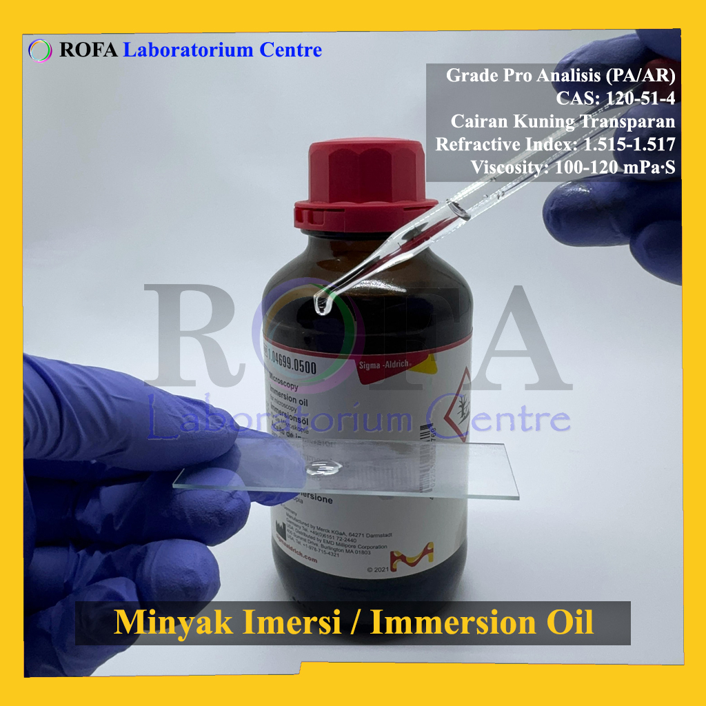 Nama Produk: Merck Minyak Imersi / Immersion Oil for Microscopy / Minyak Mikroskop / Minyak Lensa Pro Analisis Eceran 10 mL Merek / Brand: Merck, Jerman Catalogue Number: 1.04699.0500 Status: Repack (Kemas Ulang / Eceran)...