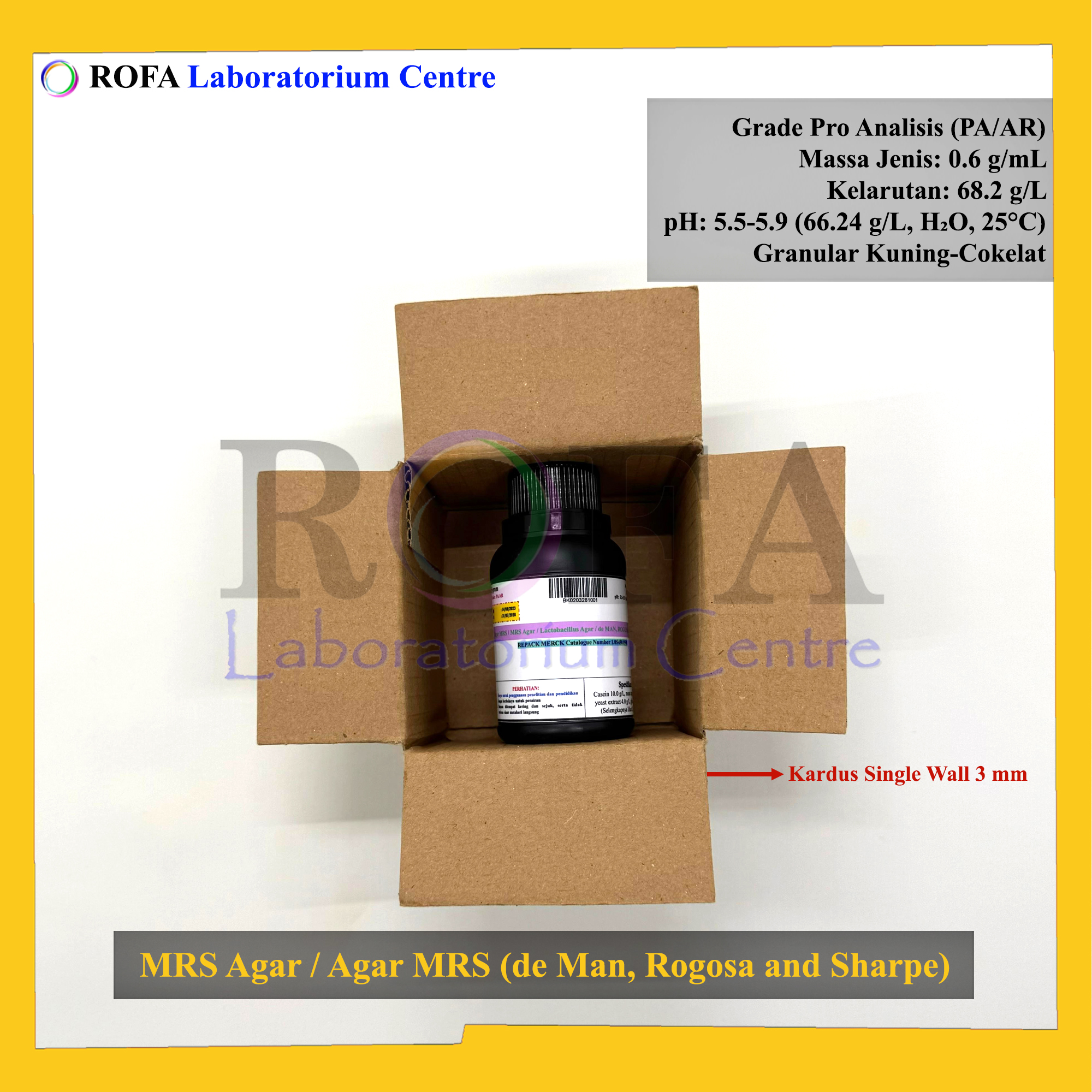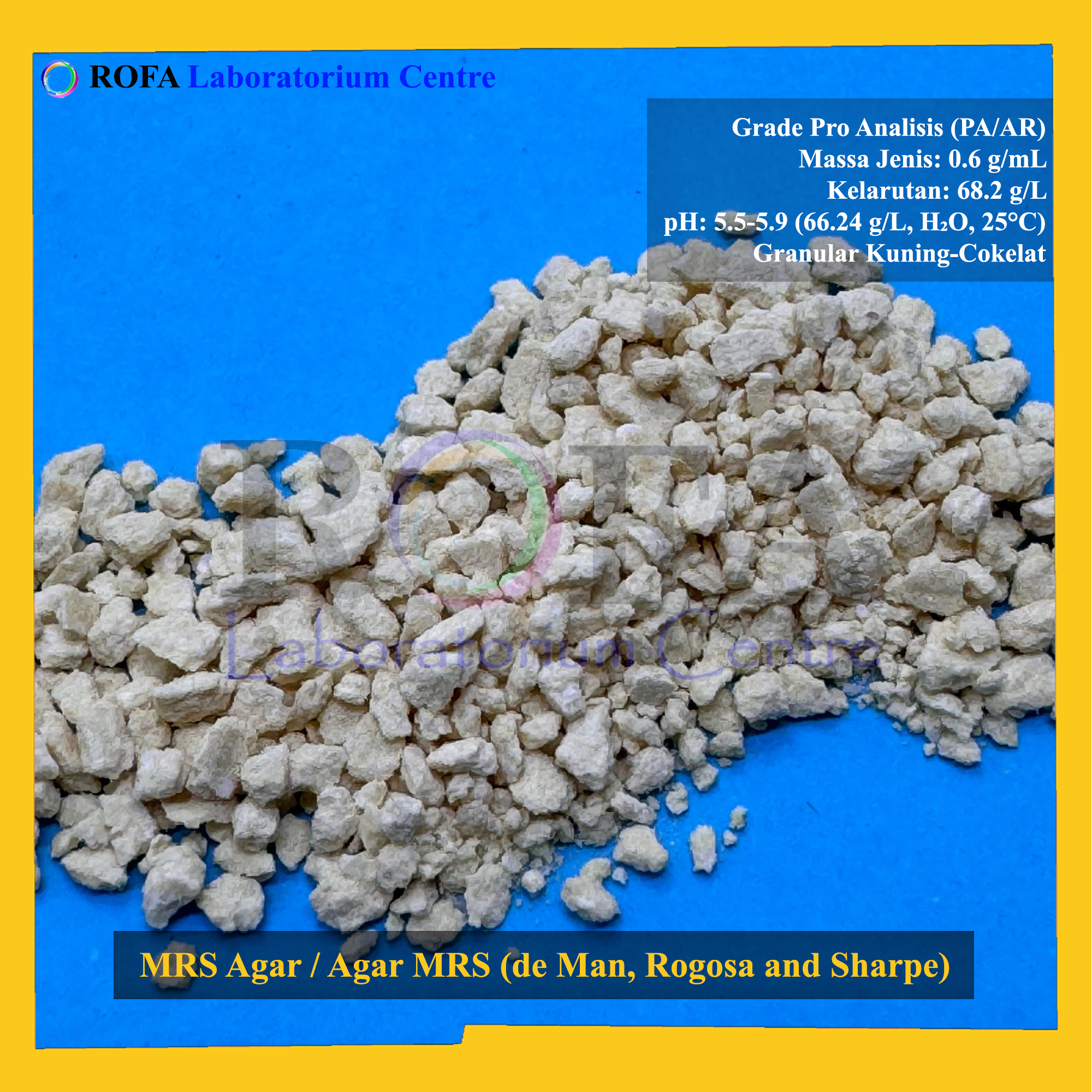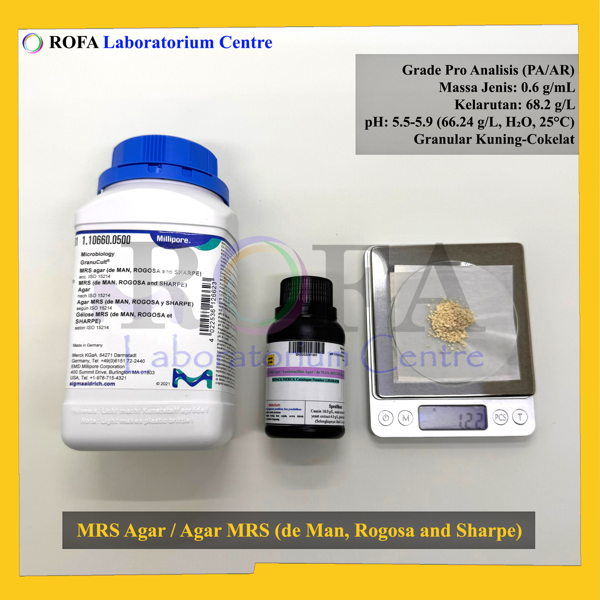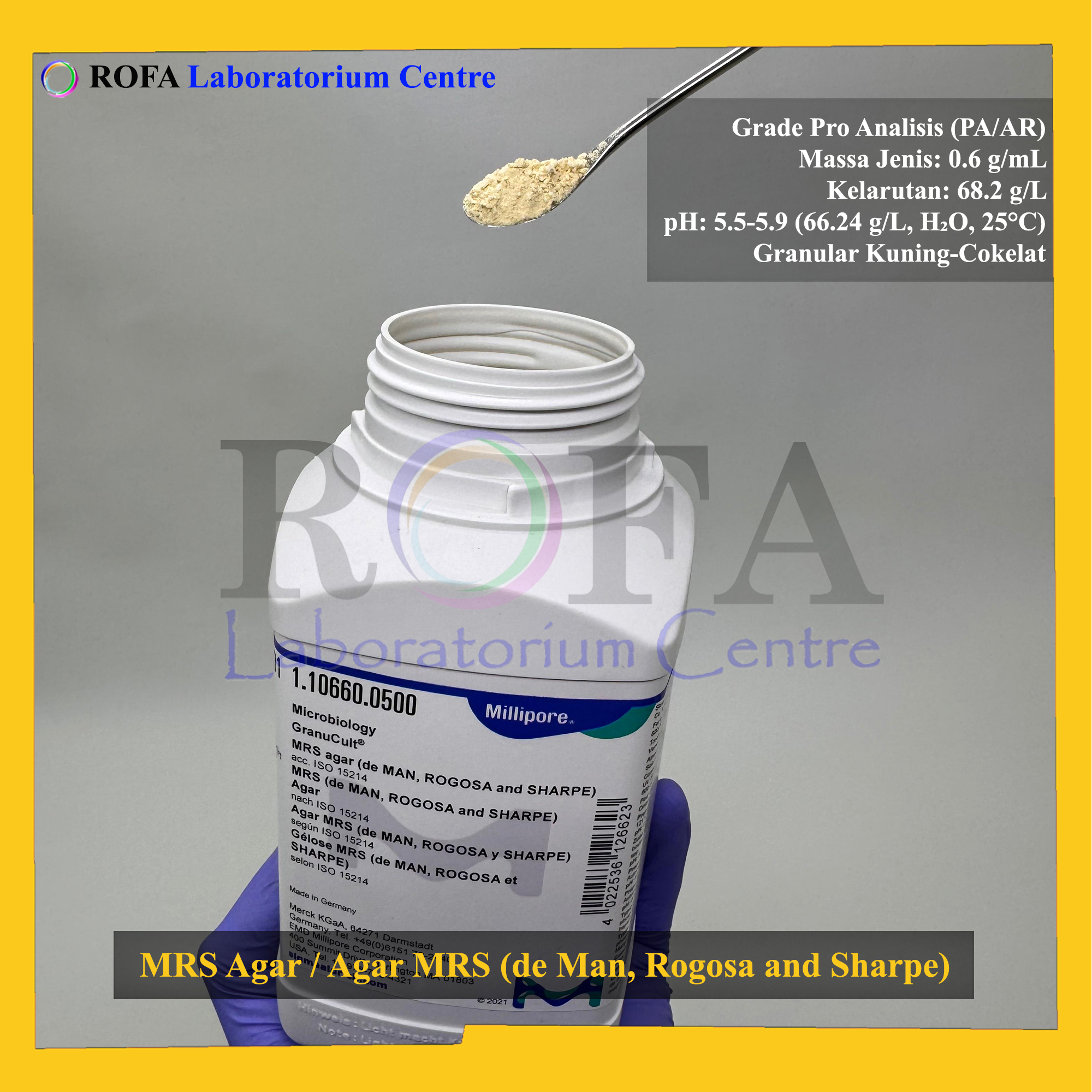 Nama Produk: Merck MRS Agar / Agar MRS (de MAN, ROGOSA and SHARPE) / Lactobacillus Agar Pro Analisis Eceran 1 Gram