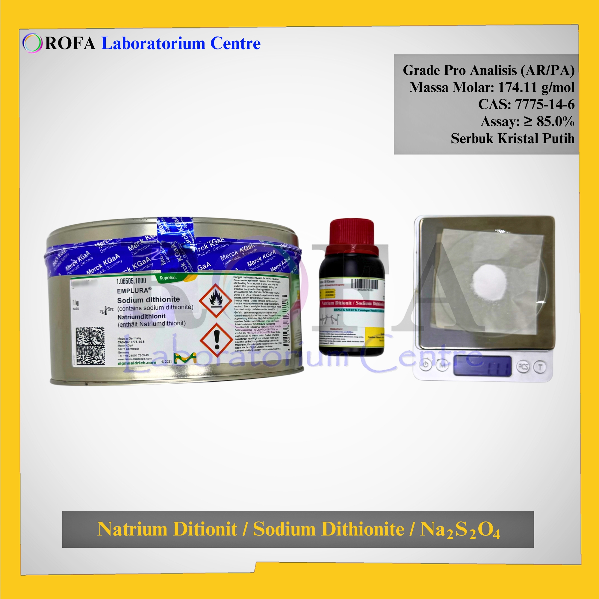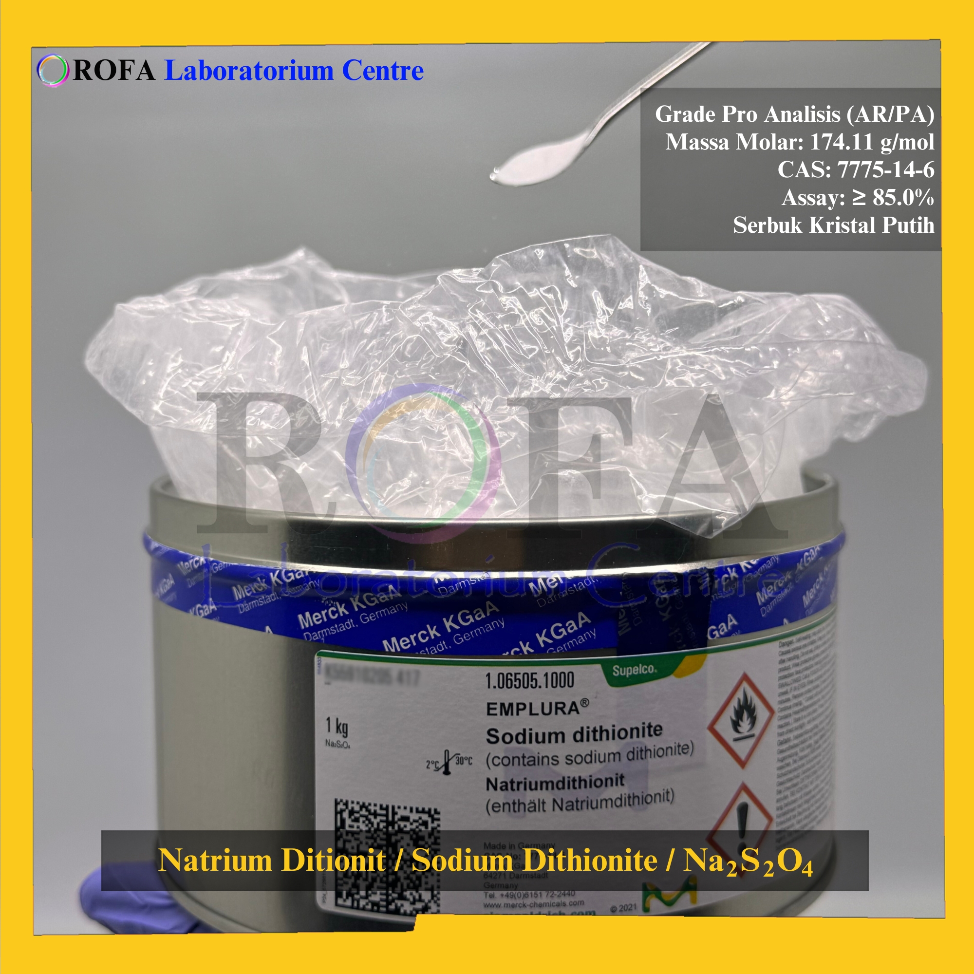 Nama Produk: Merck Natrium Ditionit / Sodium Dithionite / Na2S2O4 Pro Analisis Eceran 1 Gram