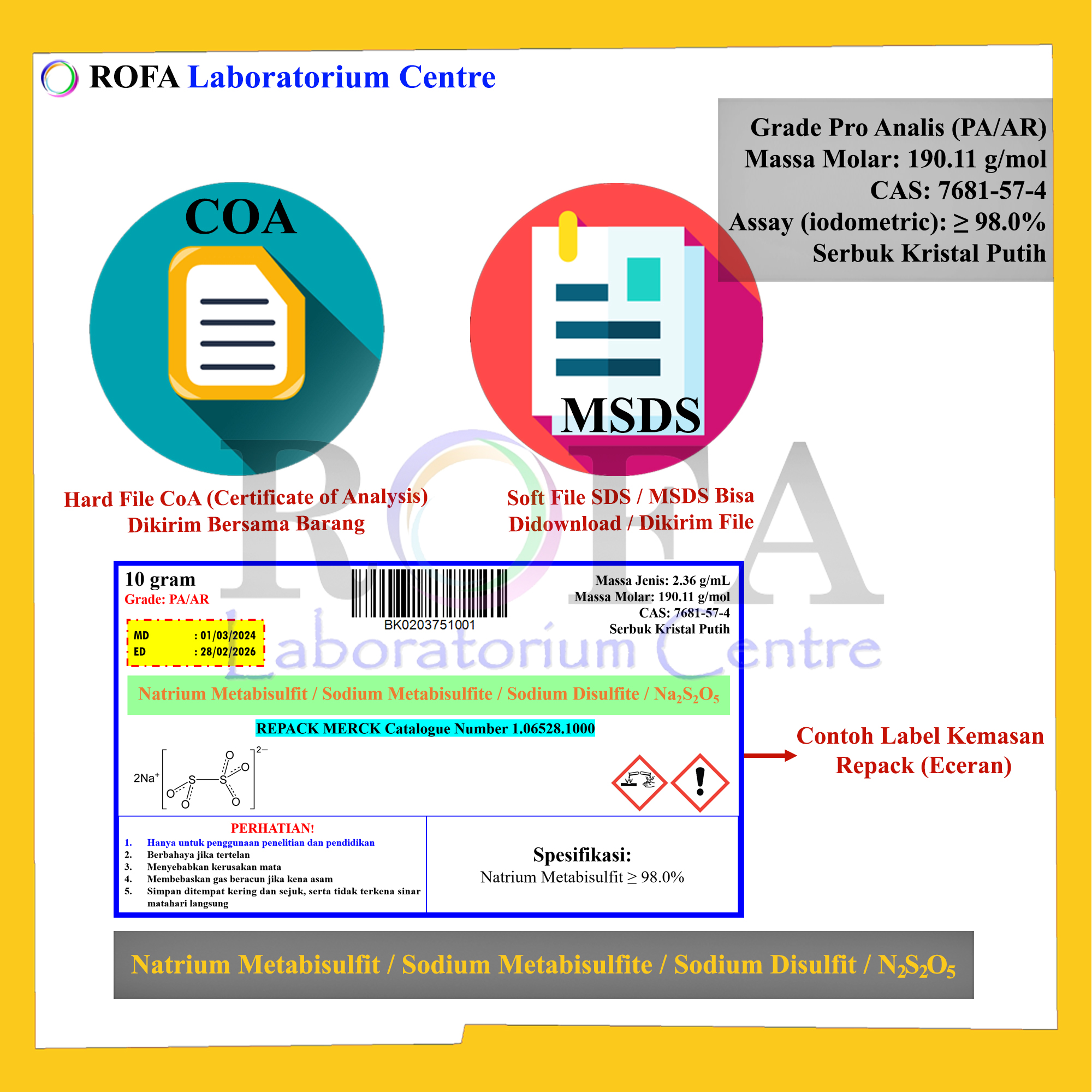 Nama Produk: Merck Natrium Metabisulfit / Sodium Metabisulfite / Sodium Disulfite / Na2S2O5 Pro Analisis Eceran 1 Gram