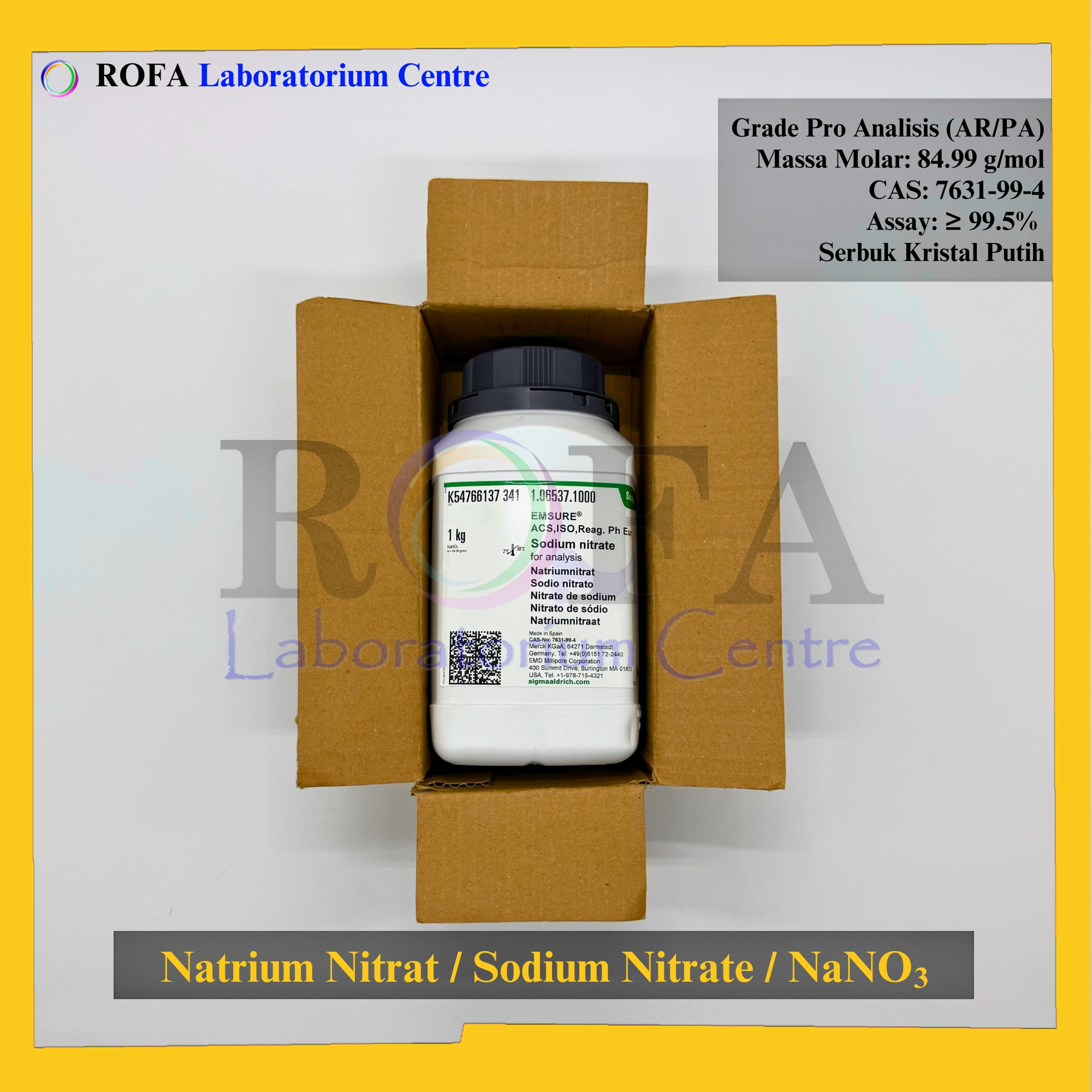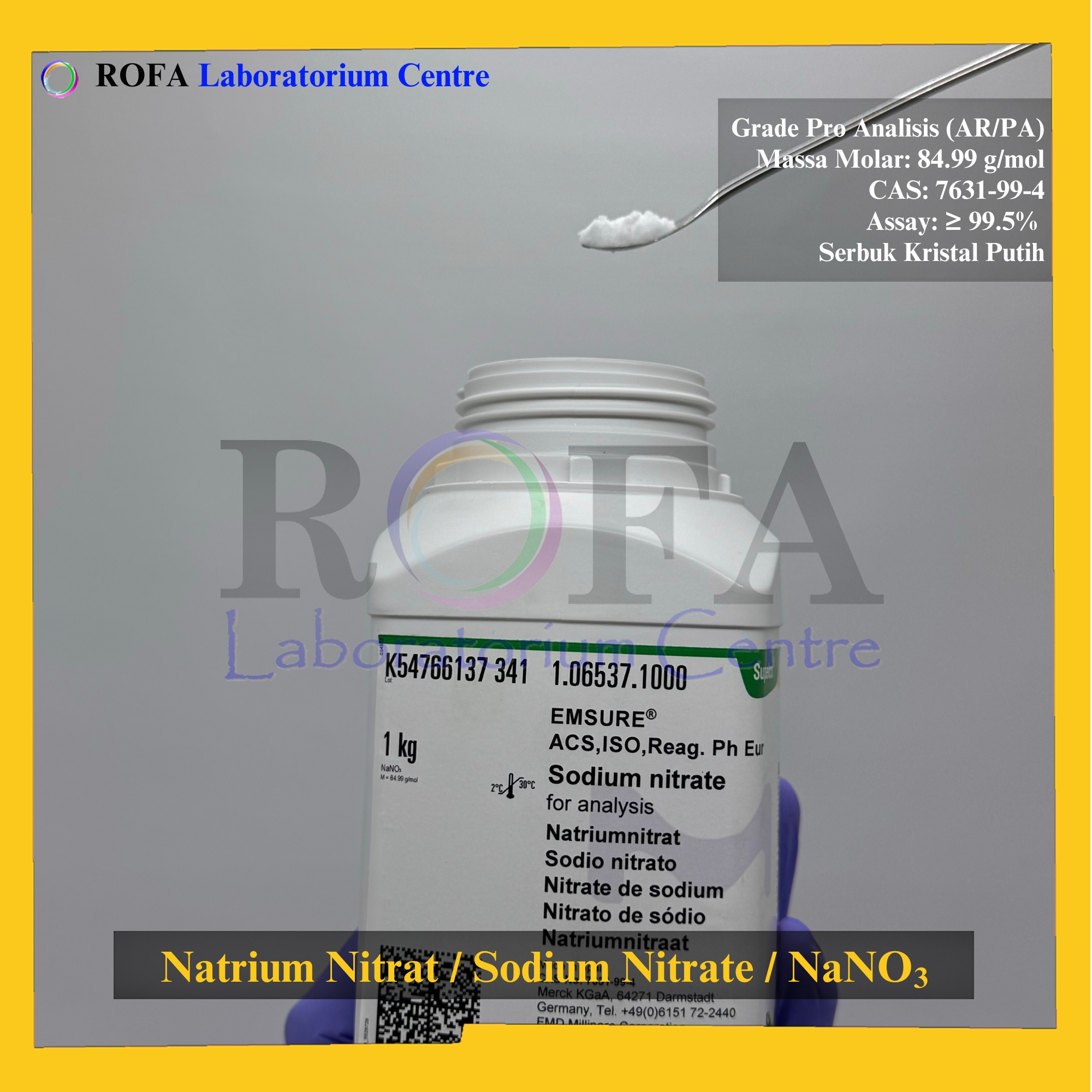 Nama Produk: Merck Natrium Nitrat / Sodium Nitrate / NaNO3 Pro Analisis 1000 Gram