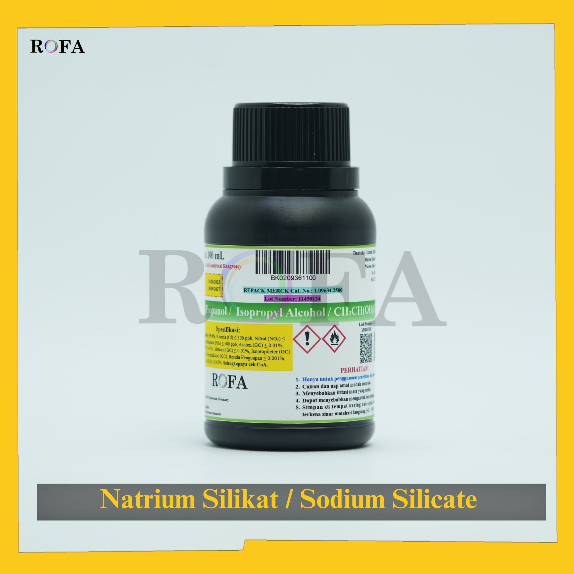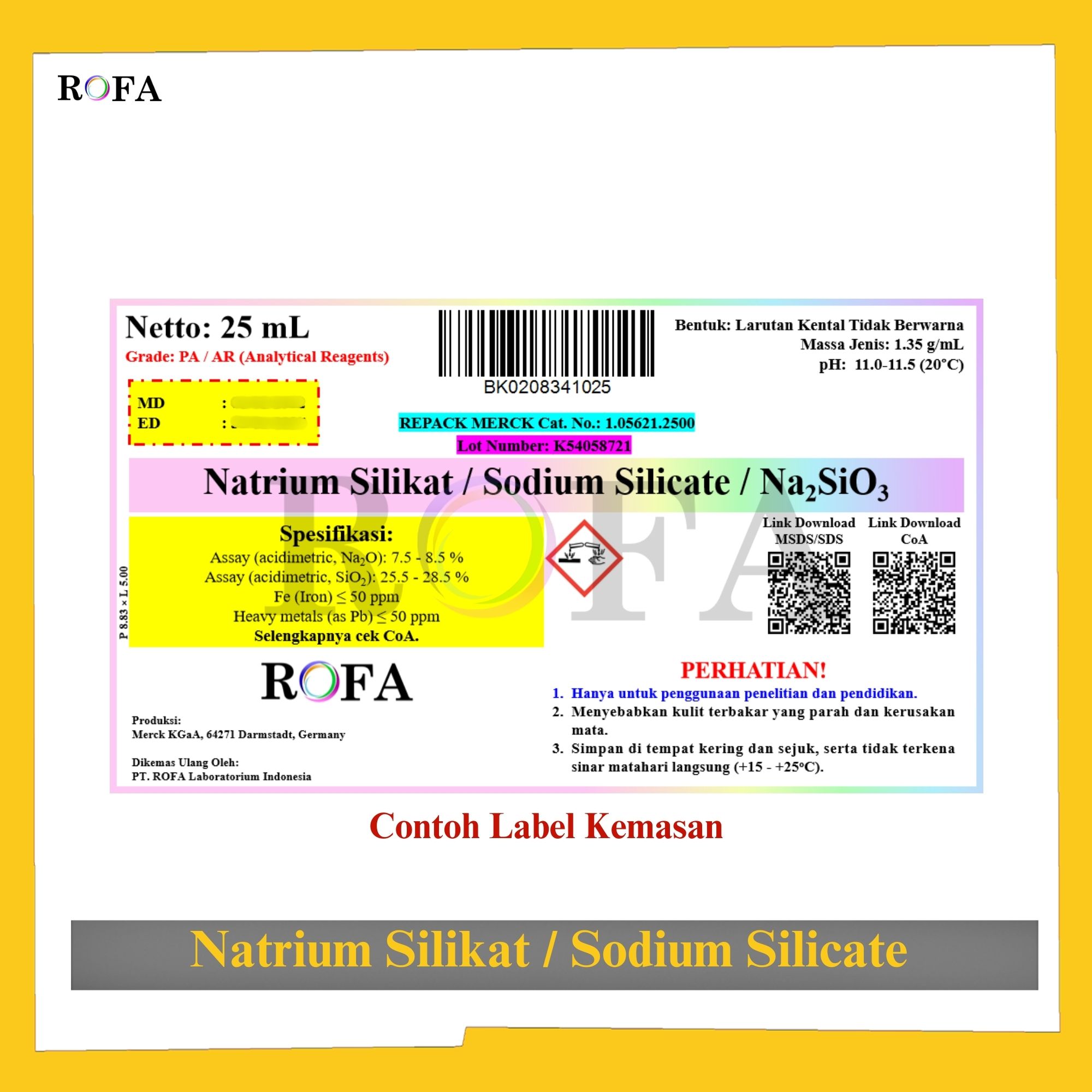 Nama Produk: Merck Natrium Silikat / Sodium Silicate / Na2SiO3 Pro Analisis Eceran 25 – 250 mL