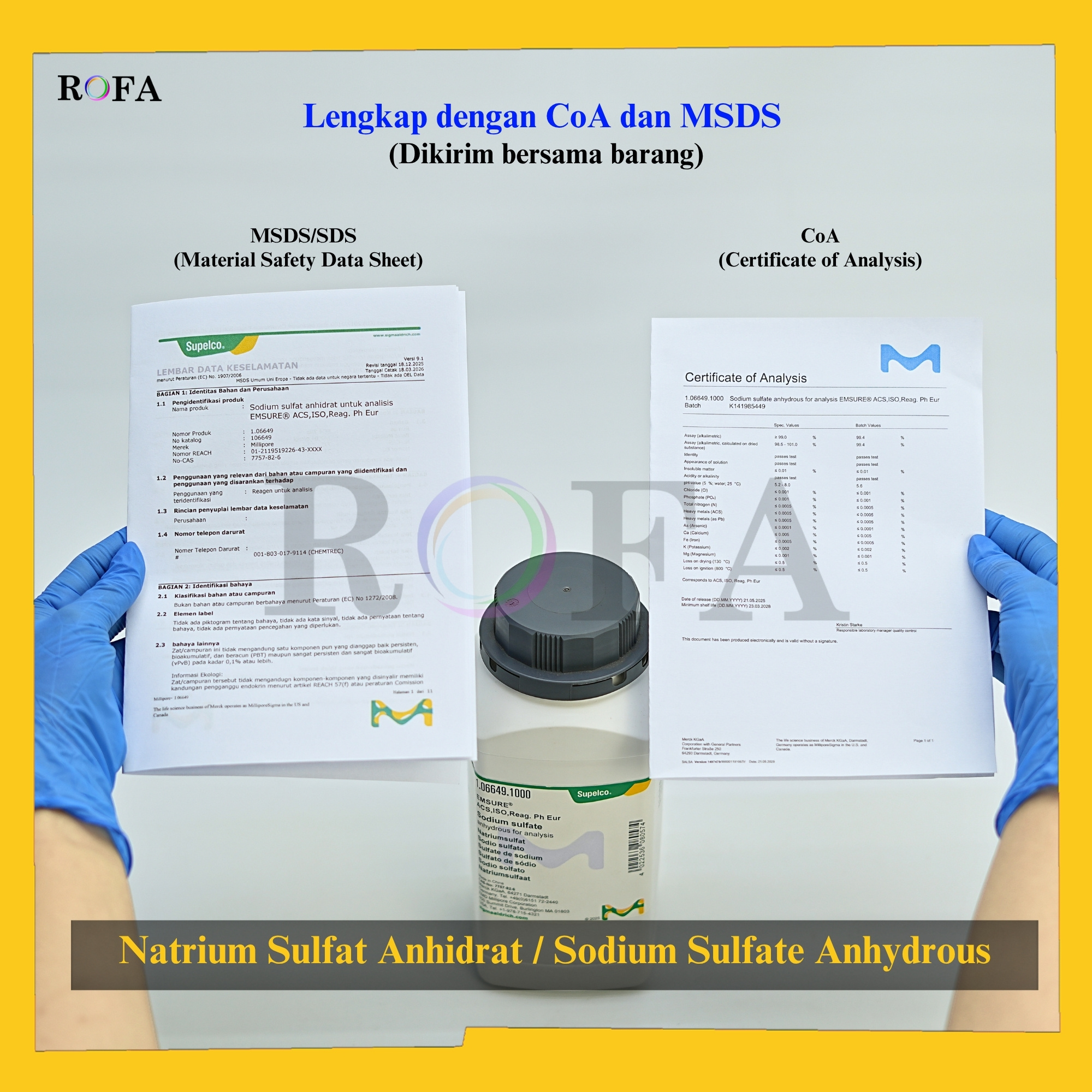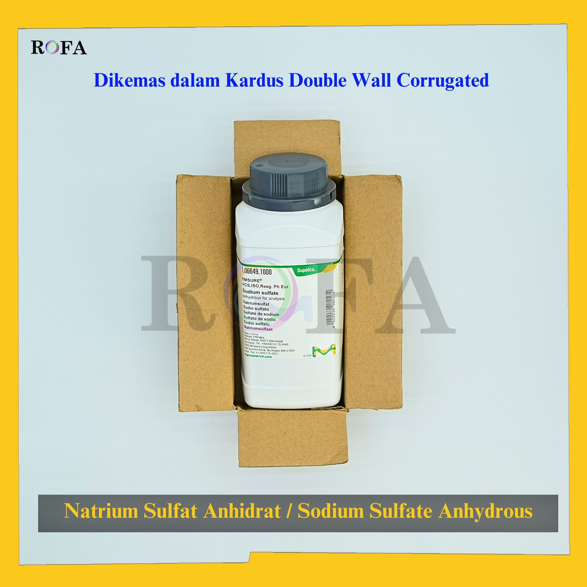 Nama Produk: Merck Natrium Sulfat Anhidrat / Sodium Sulfate Anhydrous / Na2SO4 Pro Analisis 500 – 1000 Gram Merek / Brand: Merck, Jerman Catalogue Number: 1.06649.0500 atau 1.06649.1000 Status: Original Pack (Kemasan Asli) Lengkap dengan...