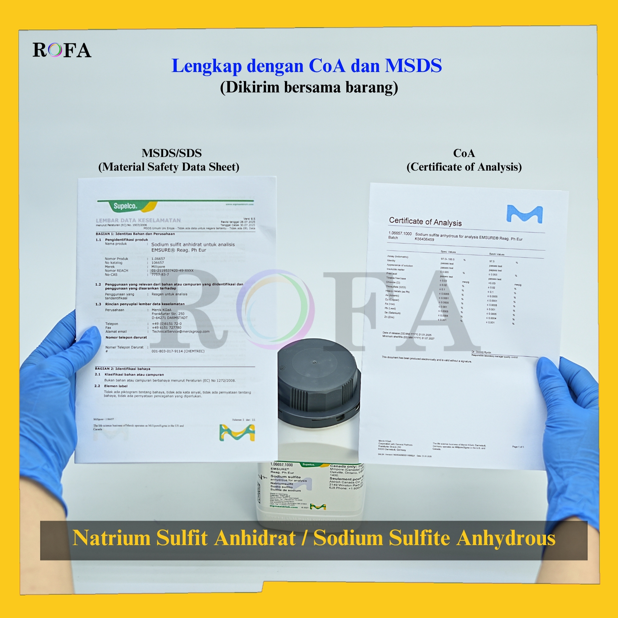 Nama Produk: Merck Natrium Sulfit Anhidrat / Sodium Sulfite Anhydrous / Na2SO3 Pro Analisis 1000 Gram Merek / Brand: Merck, Jerman Catalogue Number: 1.06657.1000 Status: Original Pack (Kemasan Asli) Lengkap dengan dokumen sertifikat analisis (CoA)...