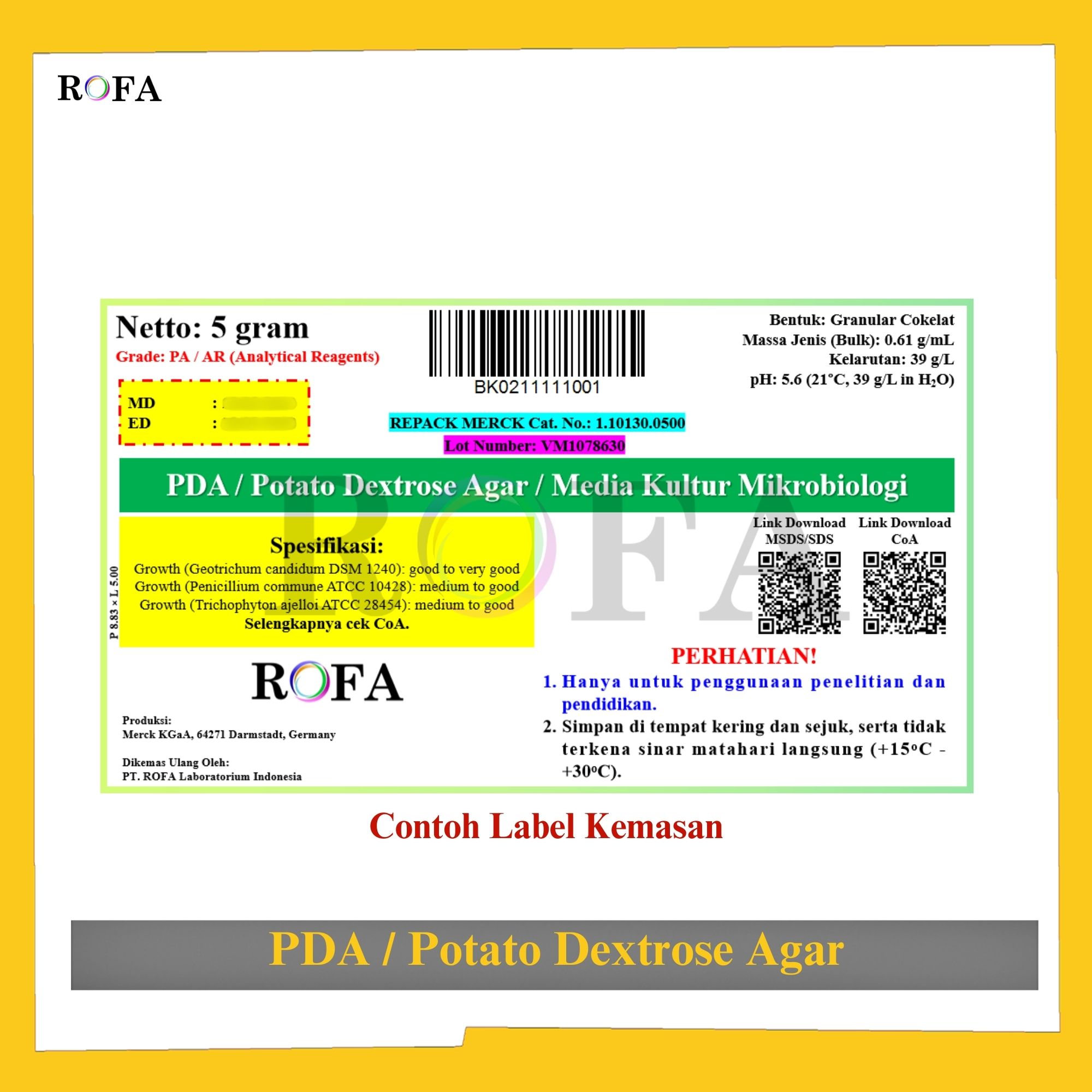 Nama Produk: Merck PDA / Potato Dextrose Agar / Media Kultur Mikrobiologi Pro Analisis Eceran 1 Gram