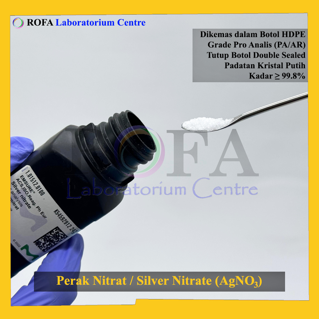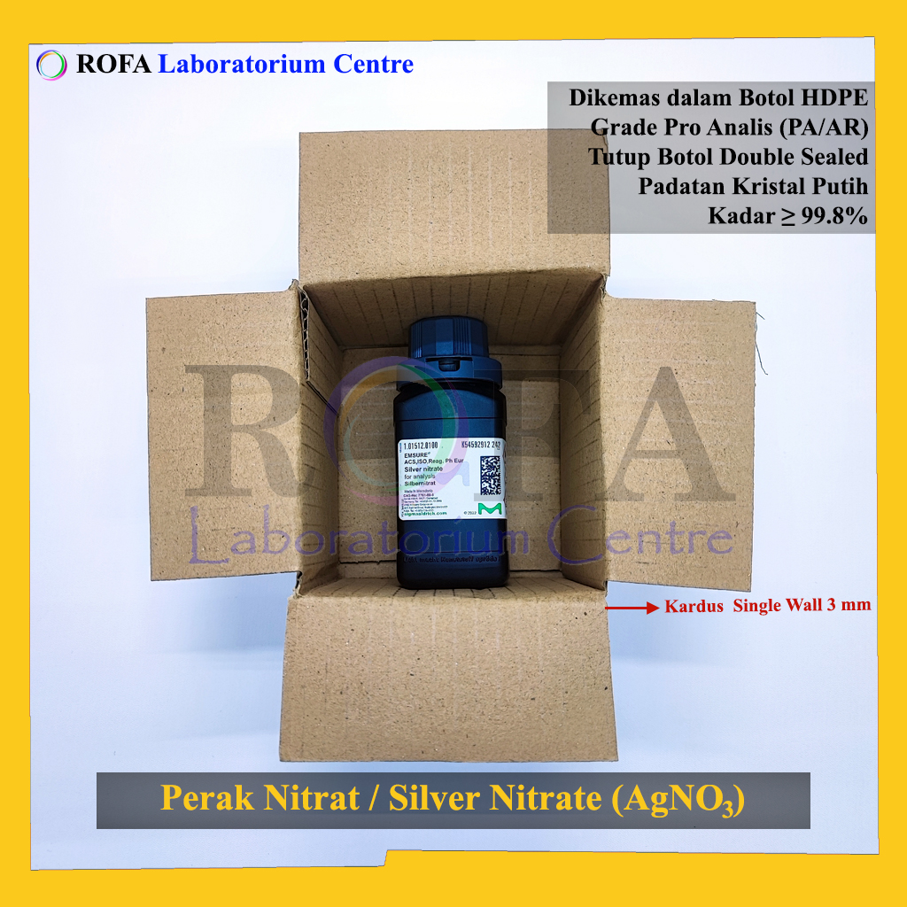 Nama Produk: Merck Perak Nitrat / Silver Nitrate / Argentous Nitrate / AgNO3 Merck 99.8% Pro Analisis 1 – 100 Gram Merek / Brand: Merck, Jerman Catalogue Number: 1.01512.0100 Status: Repack (Kemas Ulang / Eceran)...