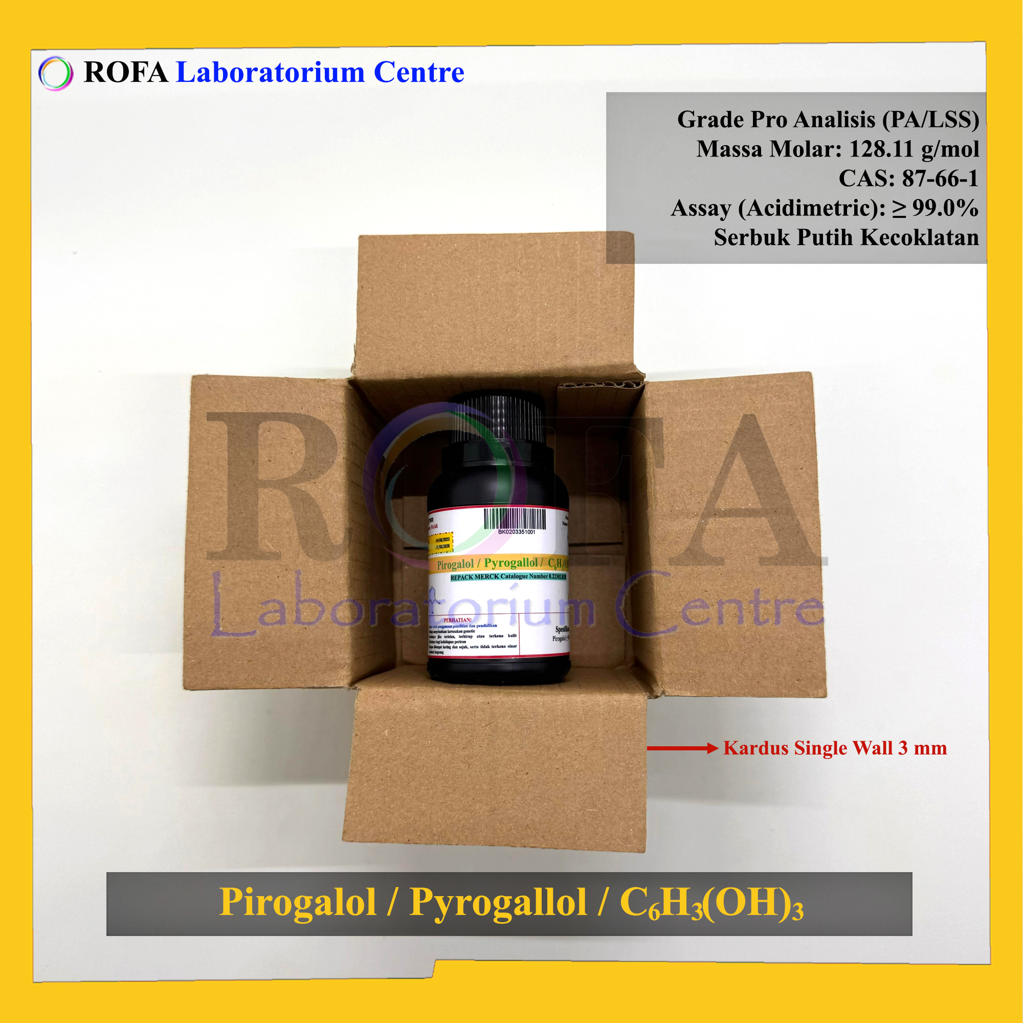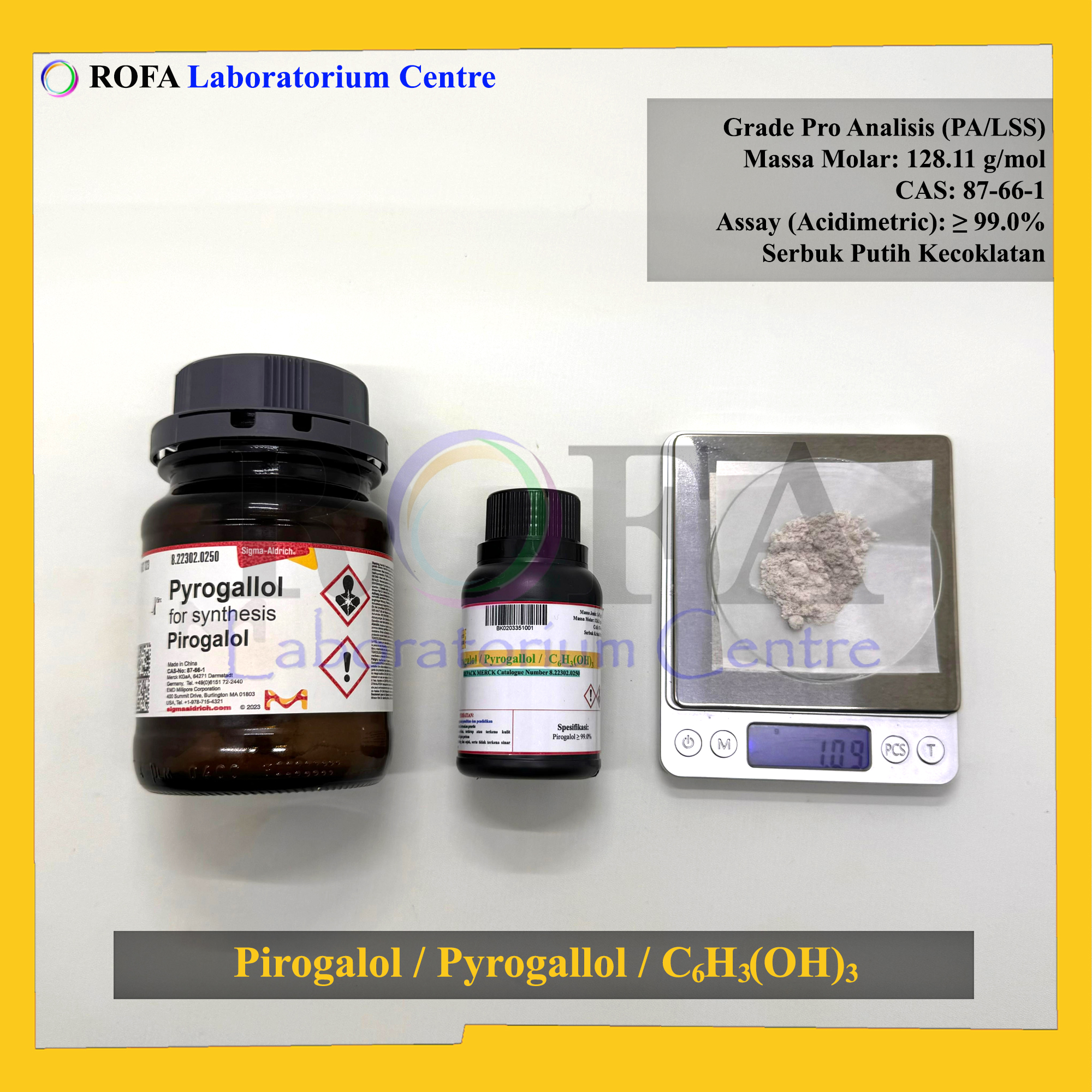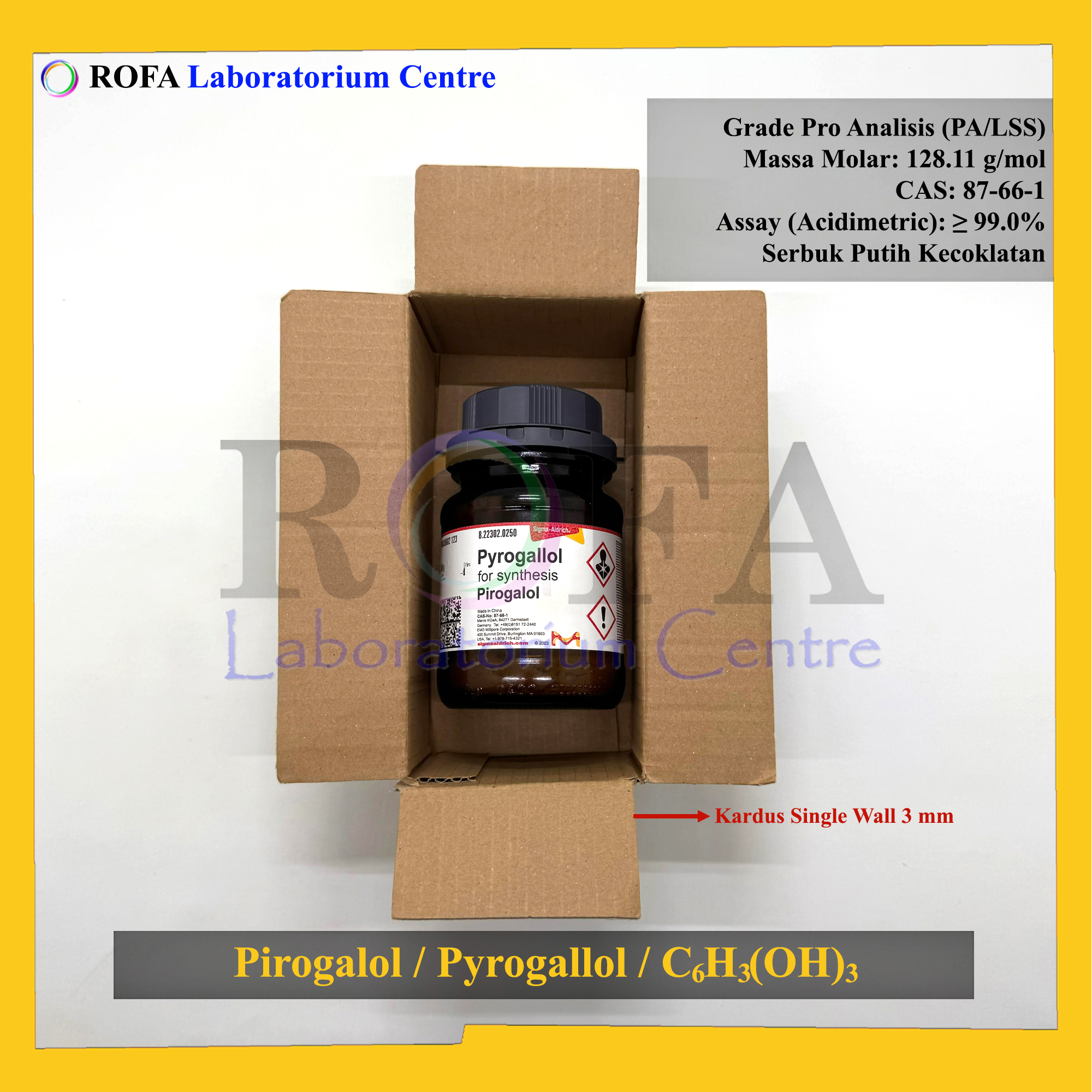 Nama Produk: Merck Pirogalol / Pyrogallol / C6H3(OH)3 Pro Analisis 1 – 250 Gram