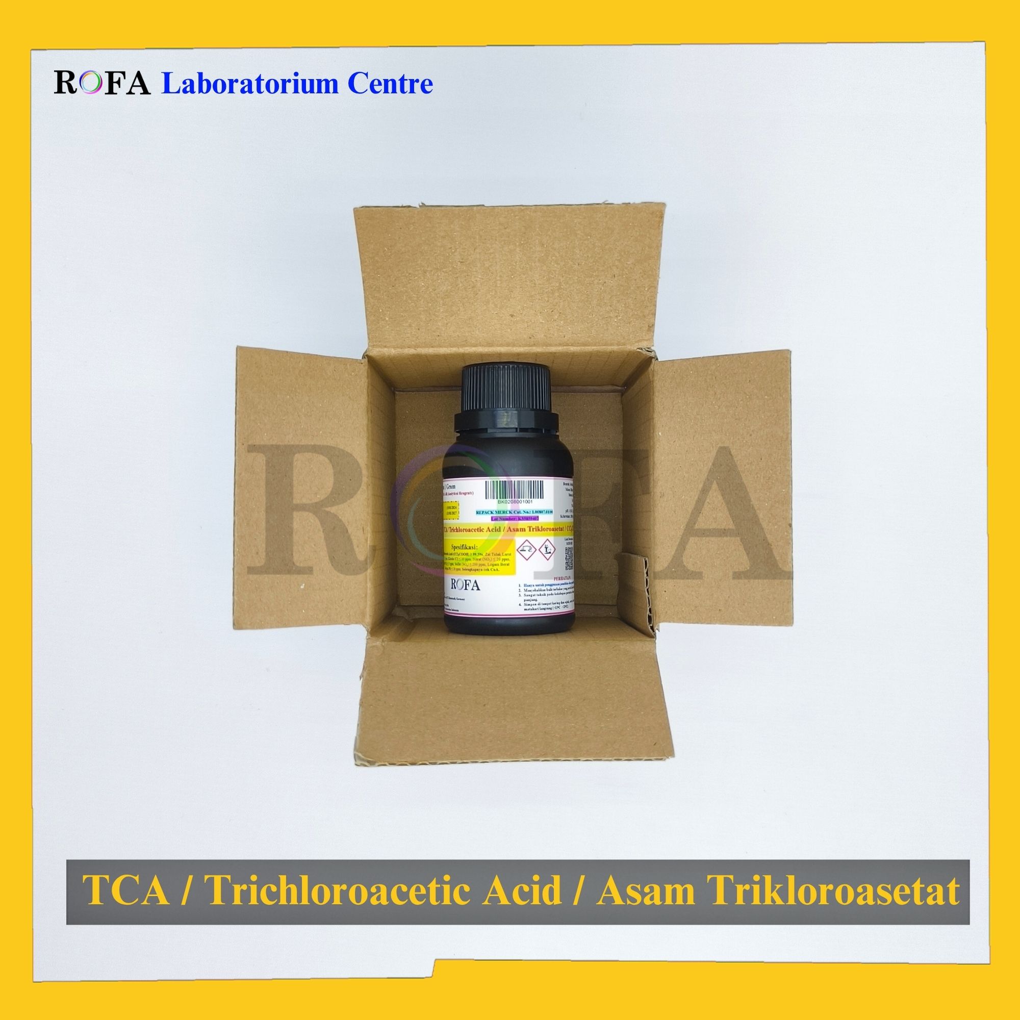 Nama Produk: Merck TCA / Trichloroacetic Acid / Asam Trikloroasetat / CCl3COOH Pro Analisis 100 – 1000 Gram Merek / Brand: Merck, Jerman Catalogue Number: 1.00807.0100 Status: Repack (Eceran / Kemas Ulang) atau Original Pack...