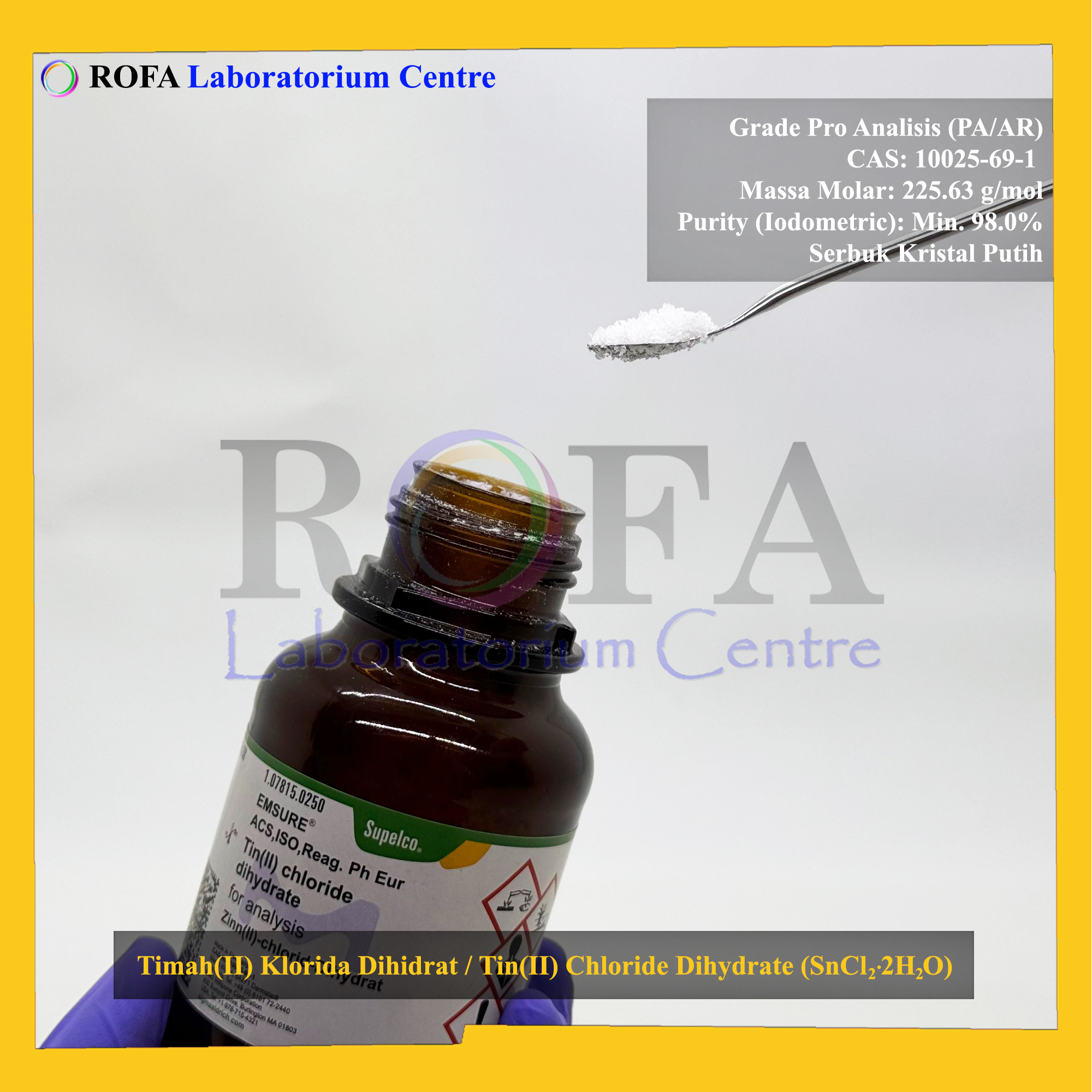 Nama Produk: MERCK Tin(II) Chloride Dihydrate / Timah(II) Klorida Dihidrat / Stannous Chloride Dihydrate / SnCl2.2H2O Pro Analisis 250 Gram Merek / Brand: Merck, Jerman Catalogue Number: 1.07814.0250 Status: Original Pack (Kemasan Asli) Lengkap dengan...