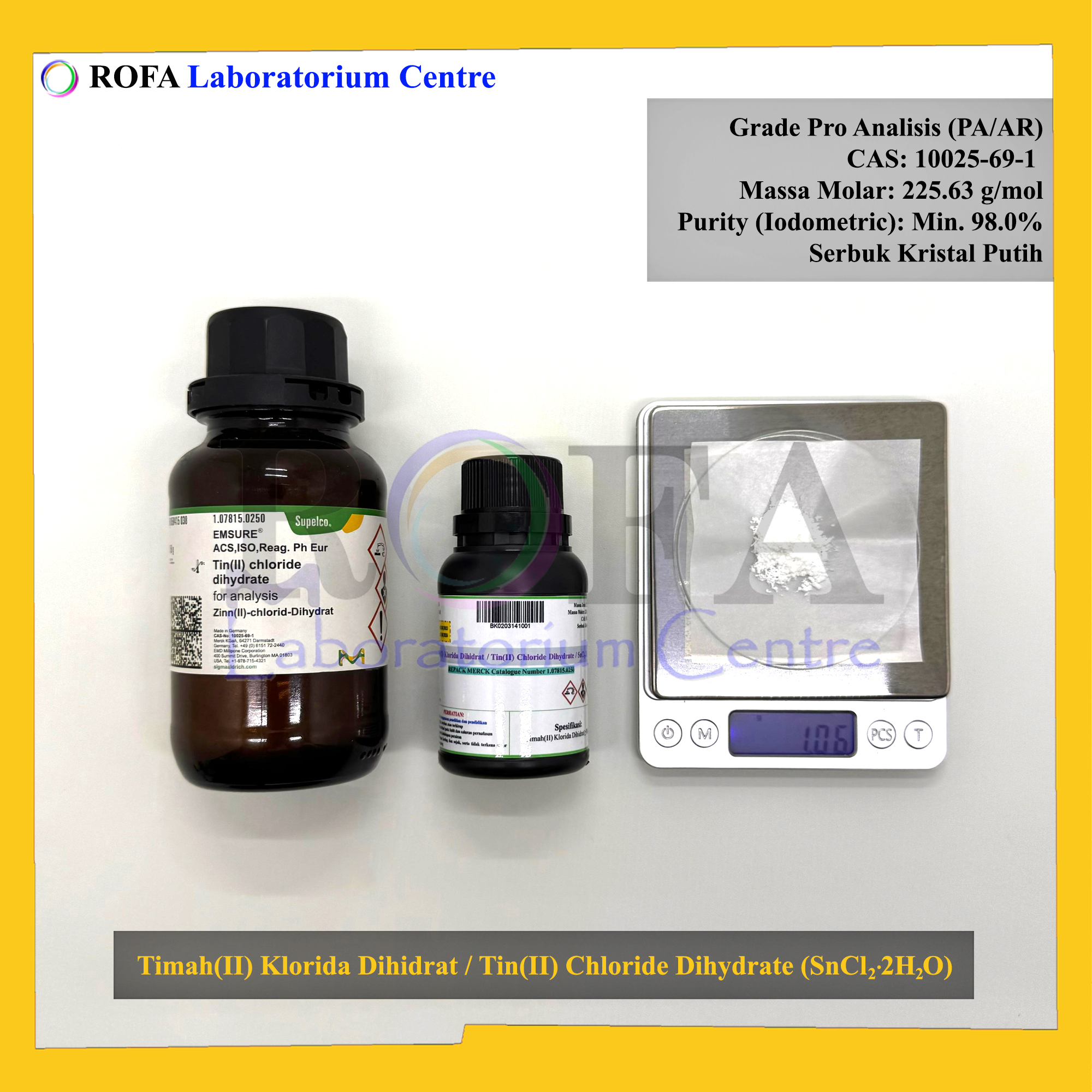 Nama Produk: Merck Tin(II) Chloride Dihydrate / Timah(II) Klorida Dihidrat / Stannous Chloride Dihydrate / SnCl2.2H2O Pro Analisis Eceran 1 Gram Merek / Brand: Merck, Jerman Catalogue Number: 1.07814.0250 Status: Repack (Kemas Ulang / Eceran)...