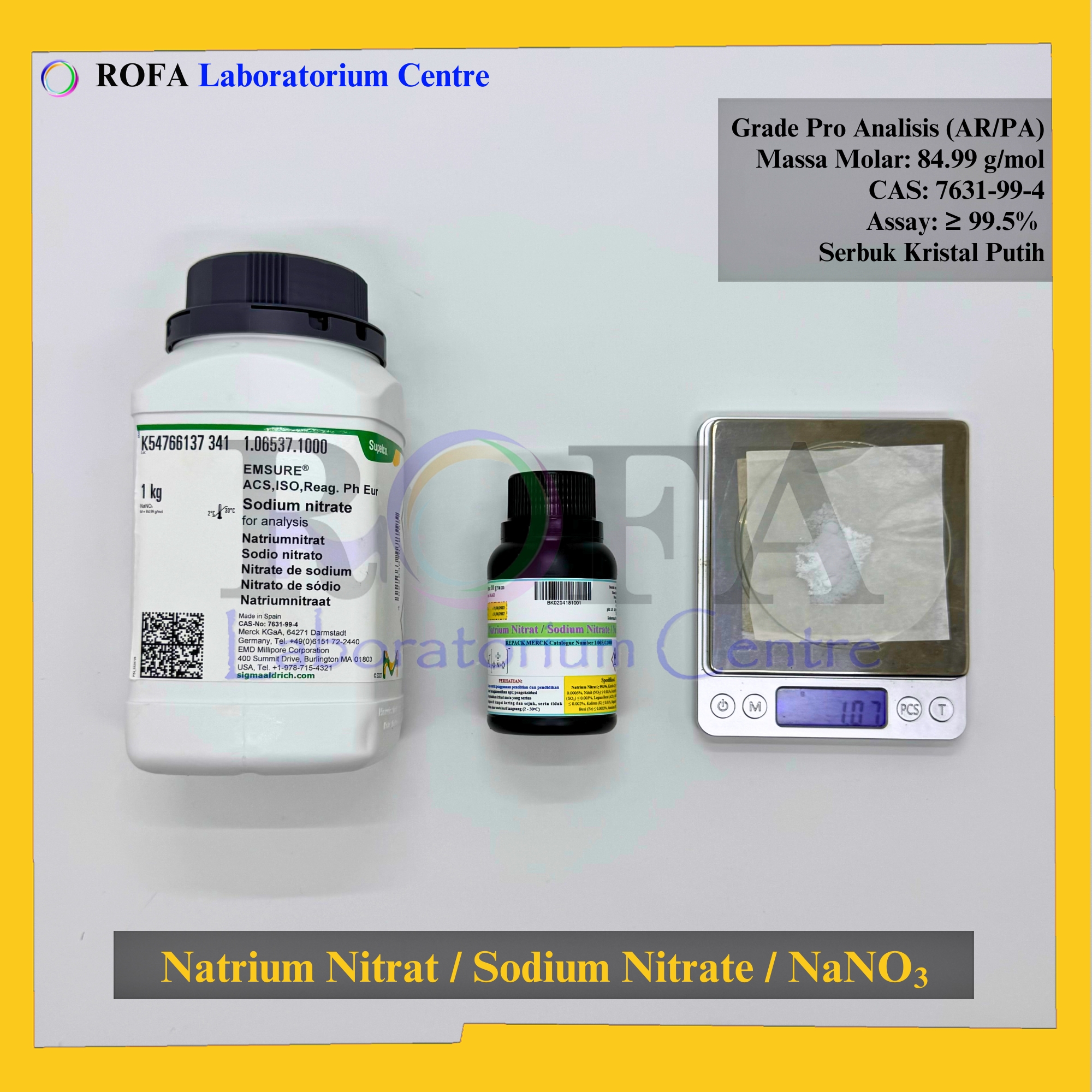 Nama Produk: Merck Natrium Nitrat / Sodium Nitrate / NaNO3 Pro Analisis Eceran 1 Gram