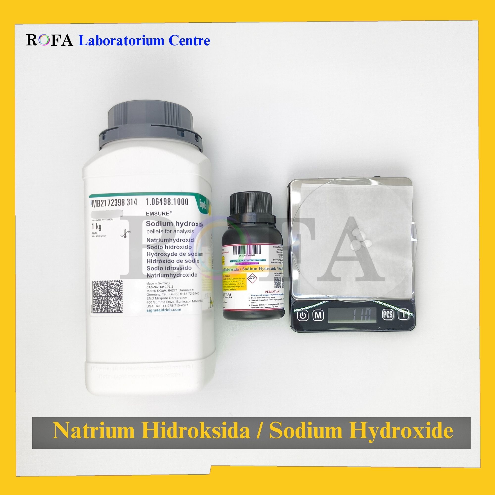 Nama Produk: MERCK Natrium Hidroksida / Sodium Hidroksida / Sodium Hydroxide / NaOH Pro Analisis Eceran 1 Gram